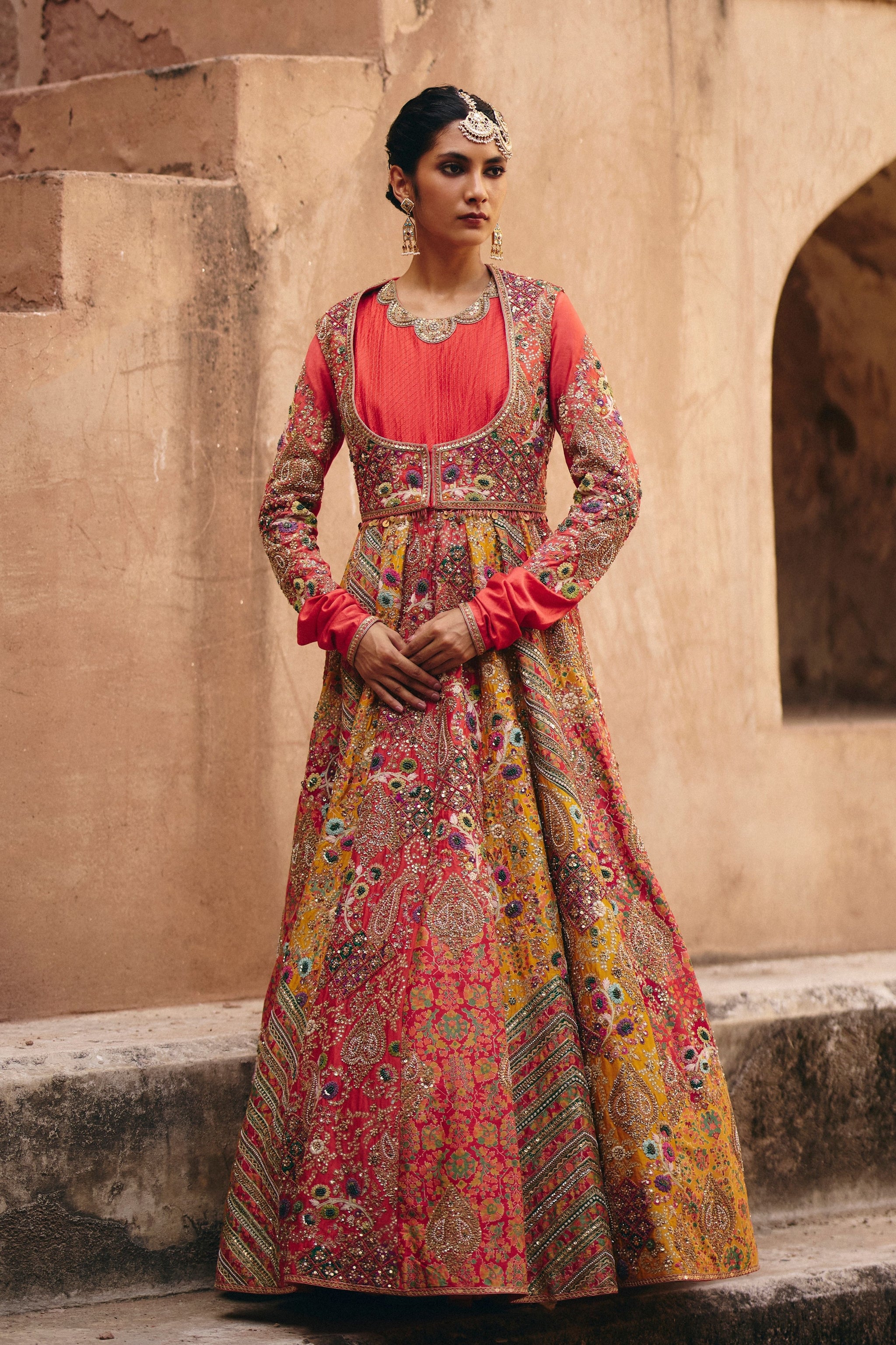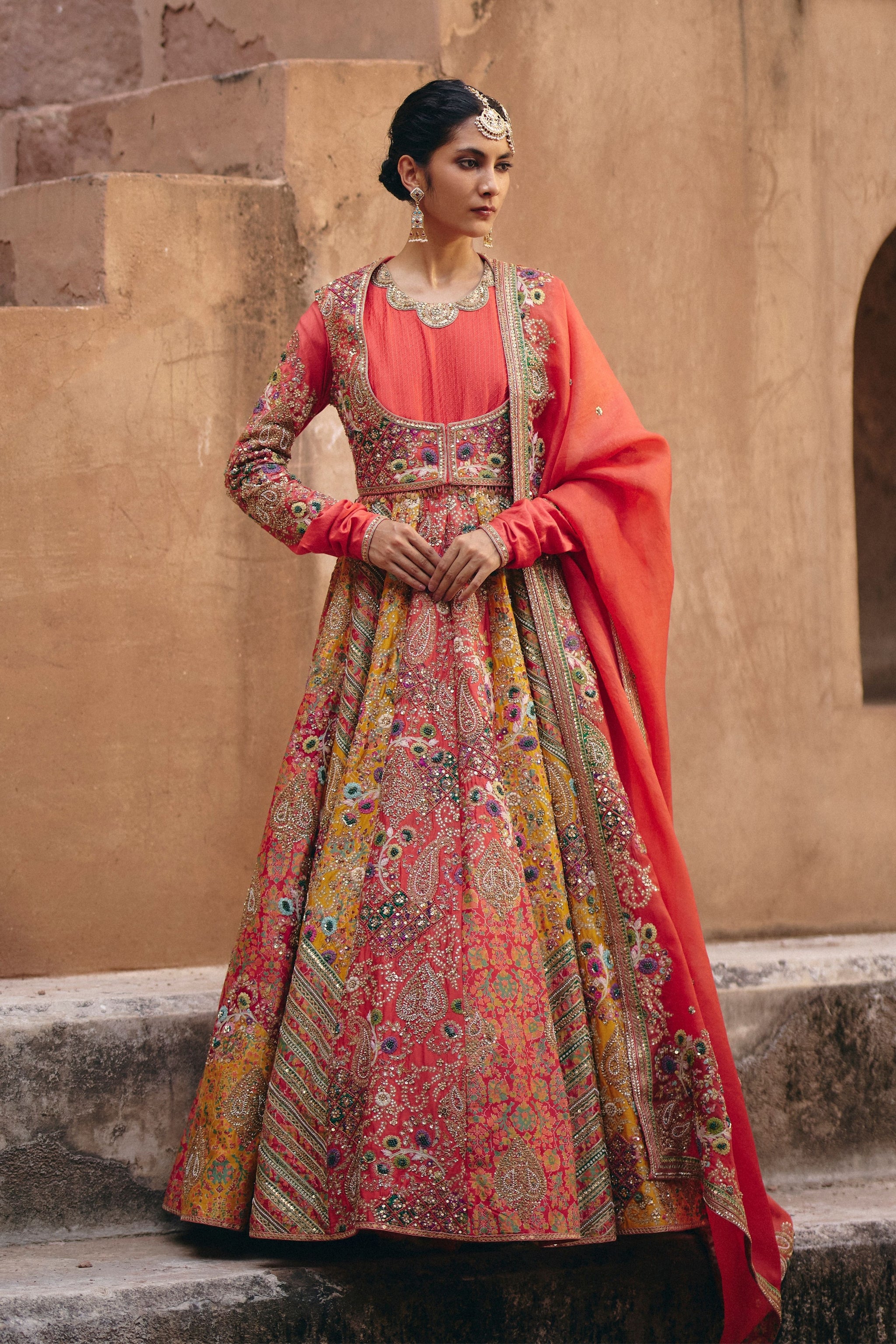 • Gulrez 20 chevron kalidar with organza dupatta.