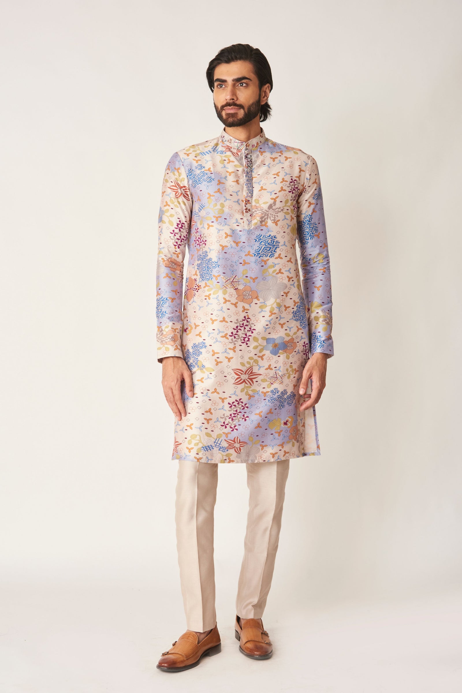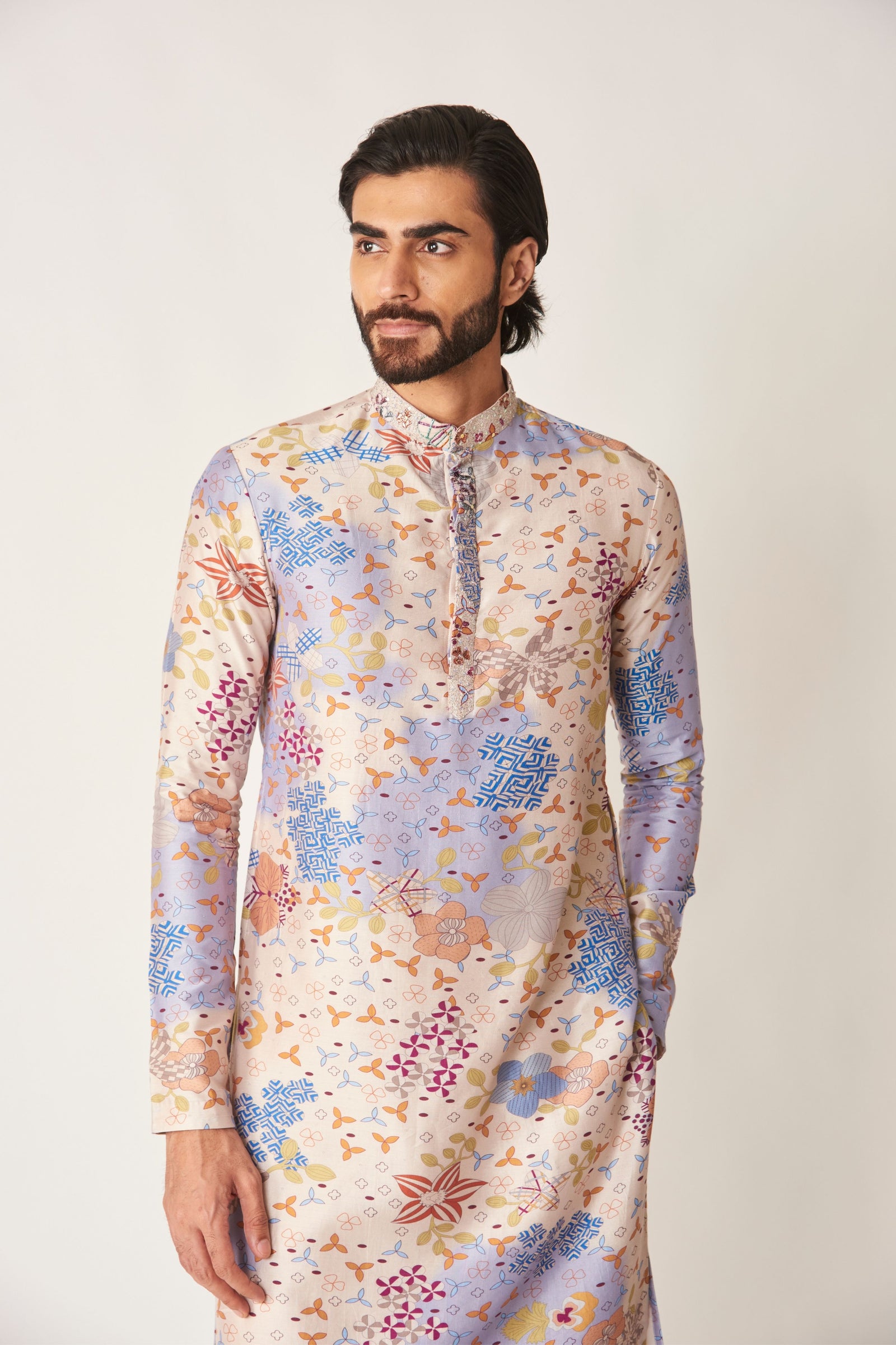 Care: Dry Clean Only. As garments are handmade and handwoven, natural variations in colours and weaves are a characteristic of the textile, and may be found in the finished garments as well.