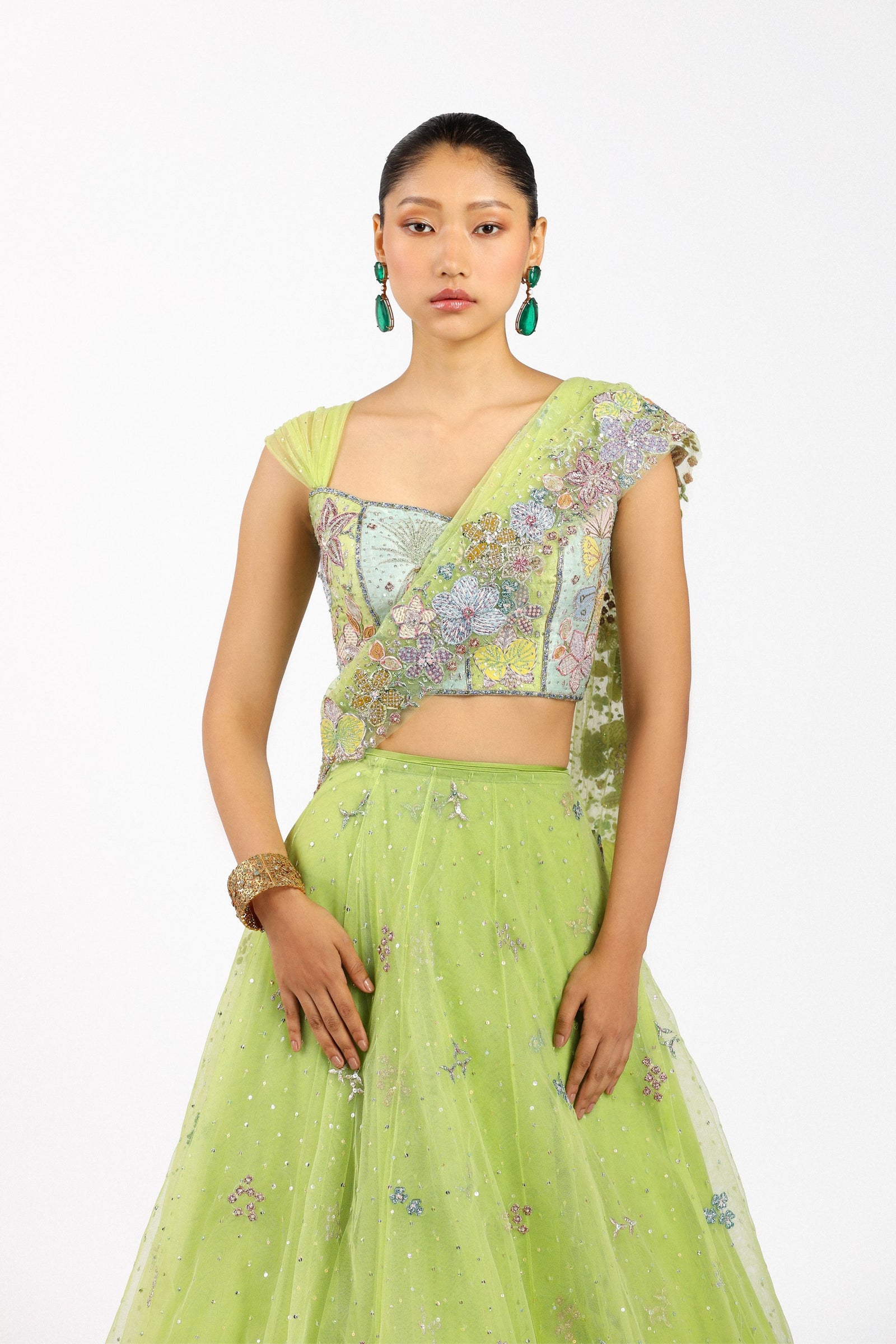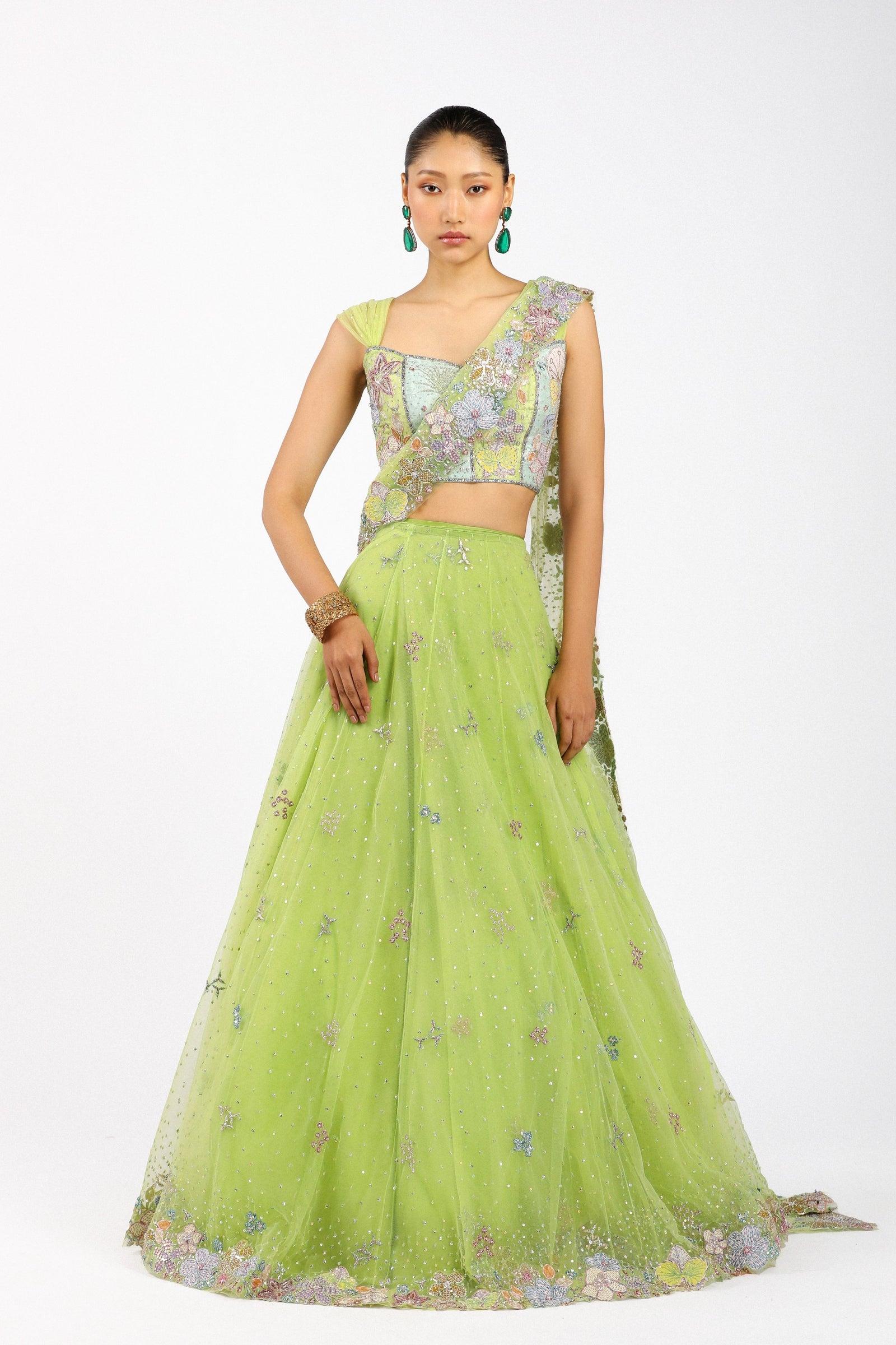 • Fabric: Kasab Satin, Tulle Net