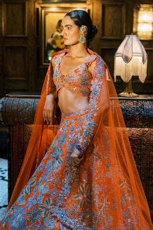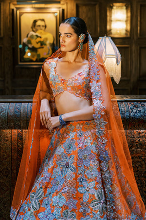 Cyanora Orange Lehenga Set