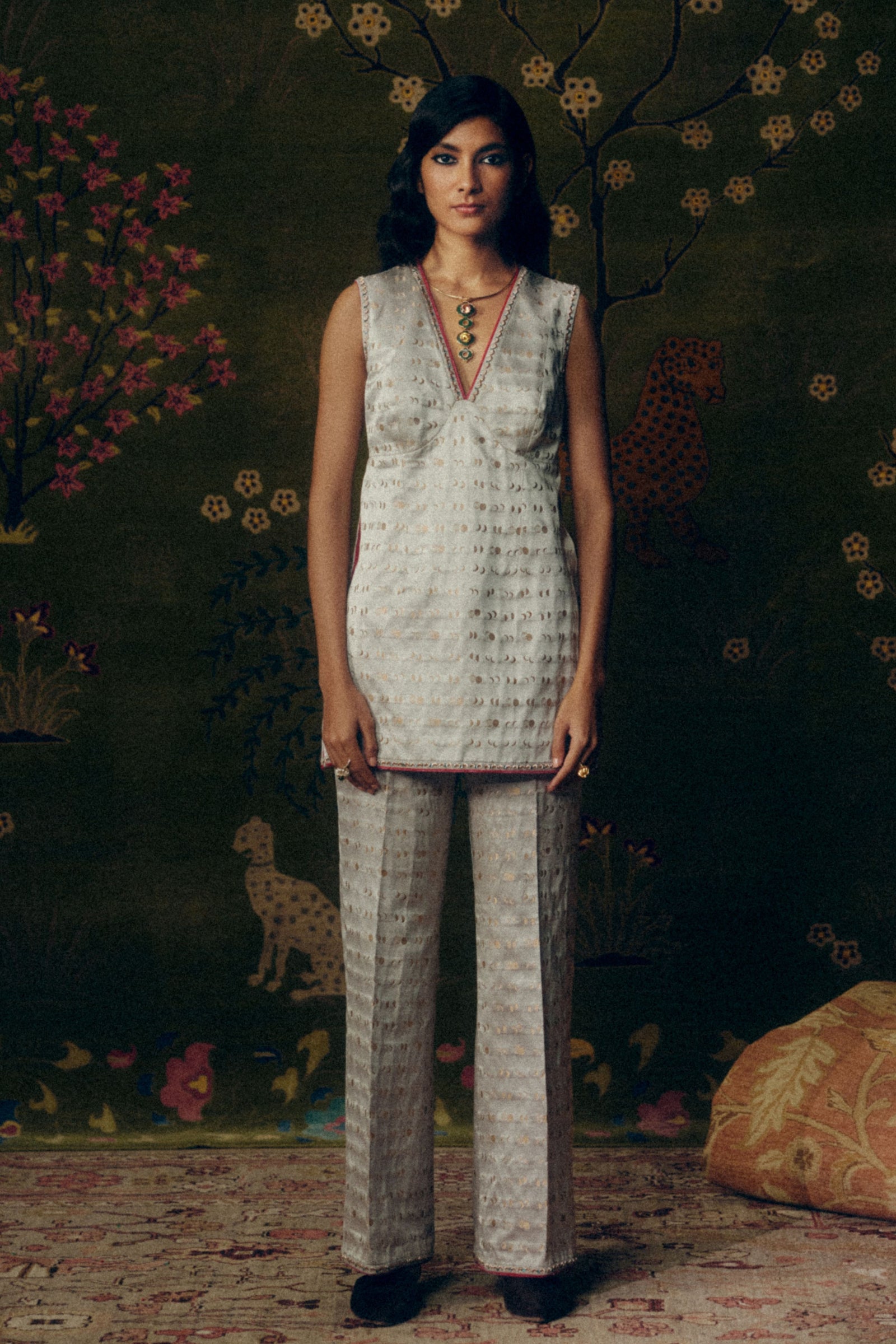 Care: Dry Clean Only. As garments are handmade and handwoven, natural variations in colours and weaves are a characteristic of the textile, and may be found in the finished garments as well.