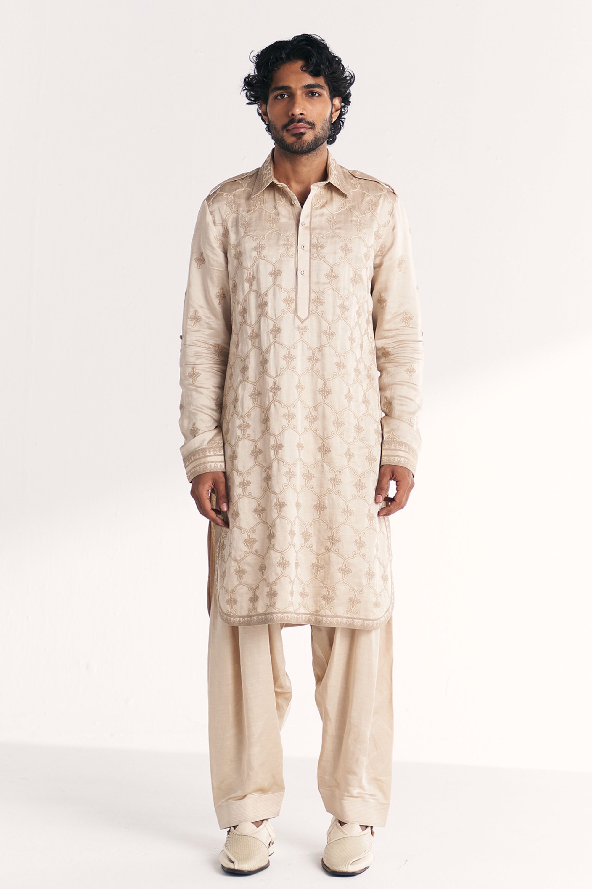 Care: Dry Clean Only. As garments are handmade and handwoven, natural variations in colours and weaves are a characteristic of the textile, and may be found in the finished garments as well.