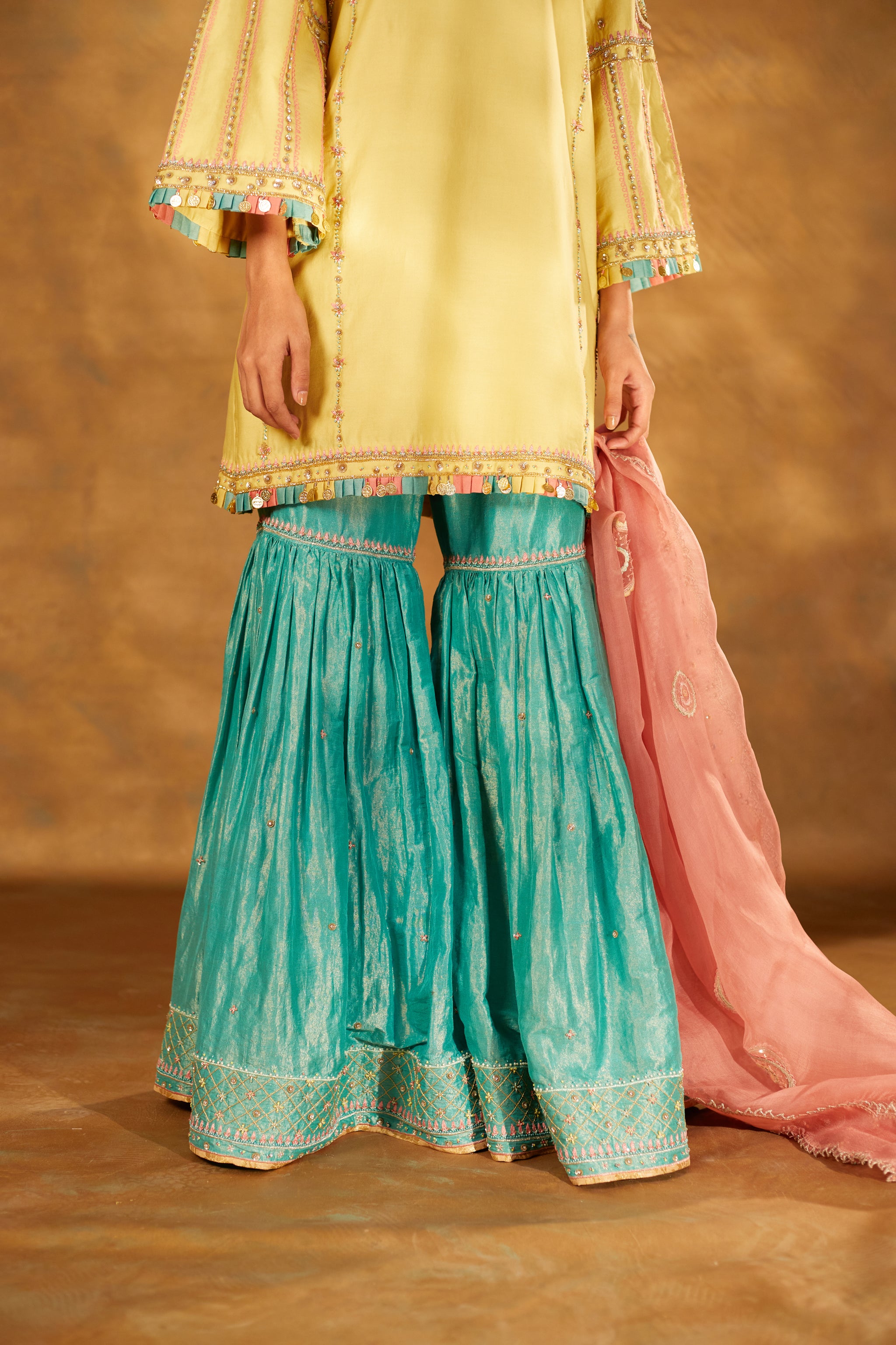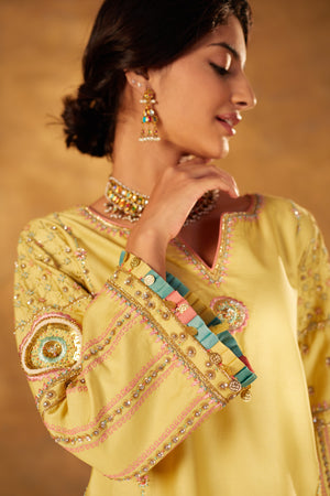 Care: Dry Clean Only. As garments are handmade and handwoven, natural variations in colours and weaves are a characteristic of the textile, and may be found in the finished garments as well.