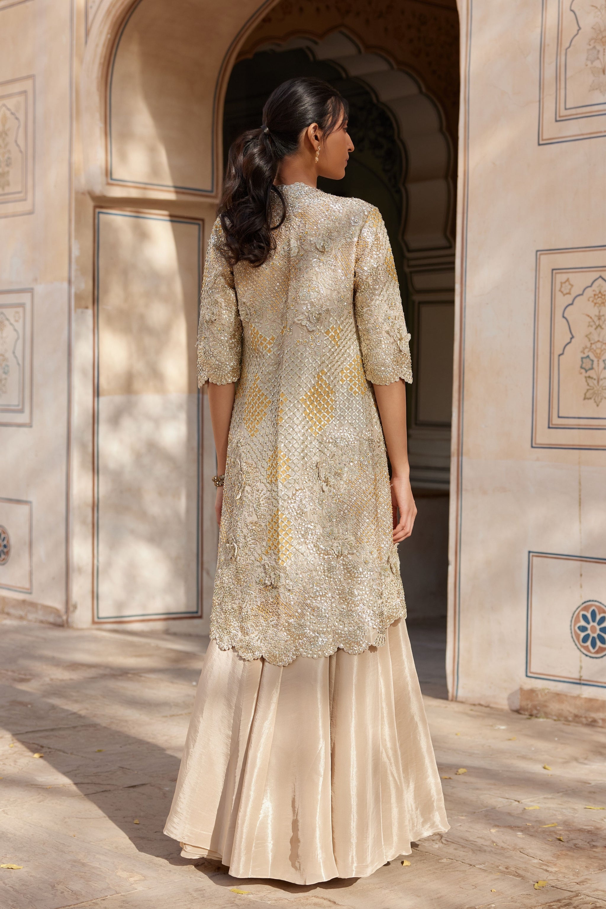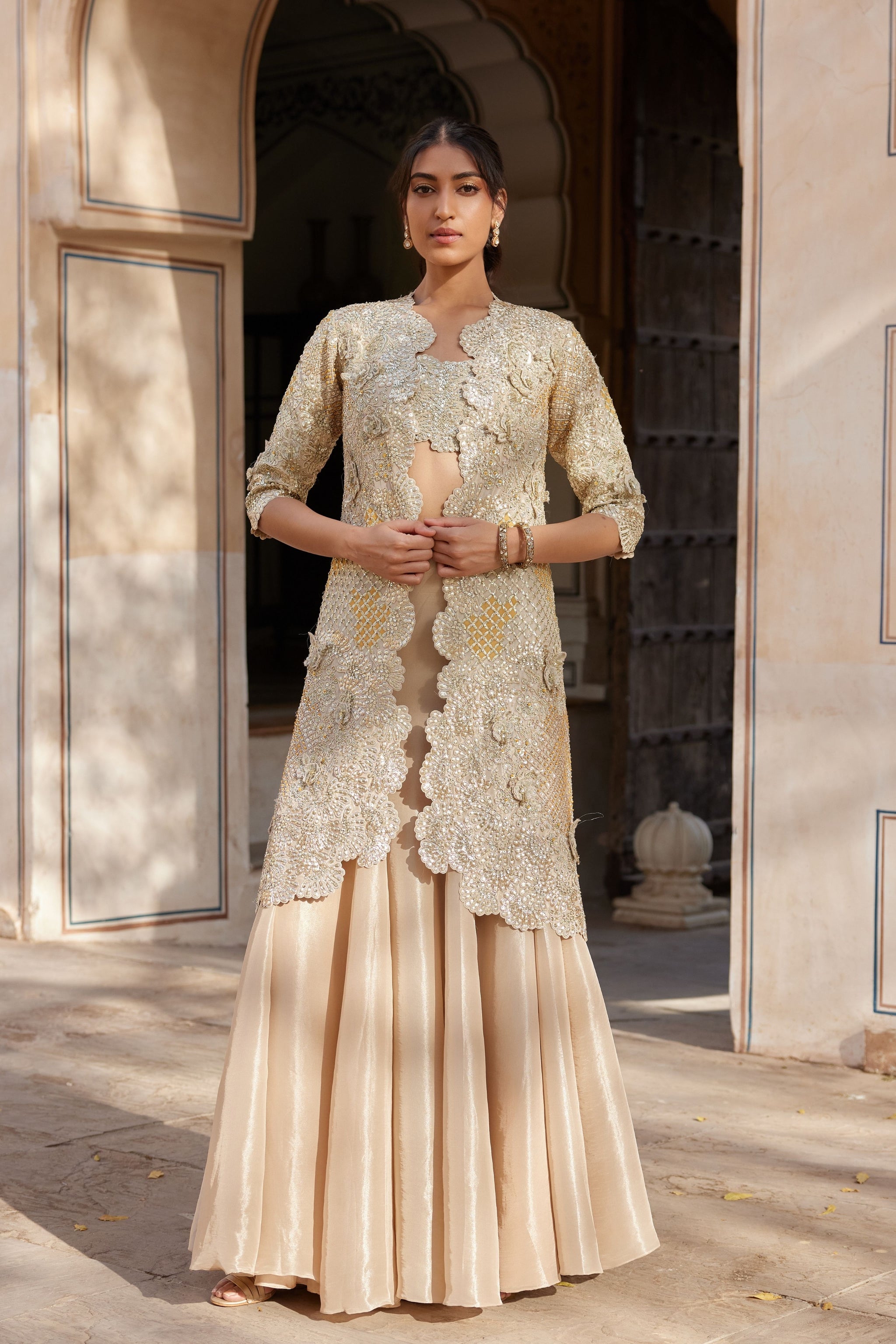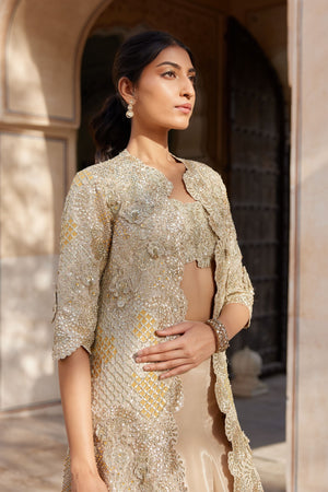 • The set is handcrafted with zardozi, french knots, aari work and 3d floral embroidery