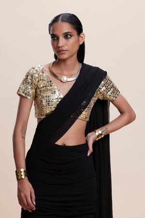 Black Ruffle Draped Saree Set