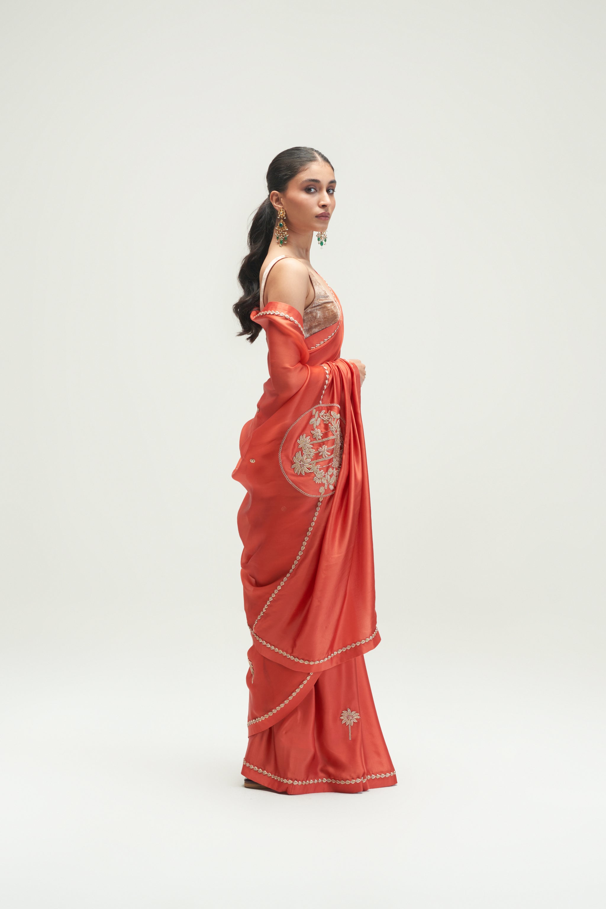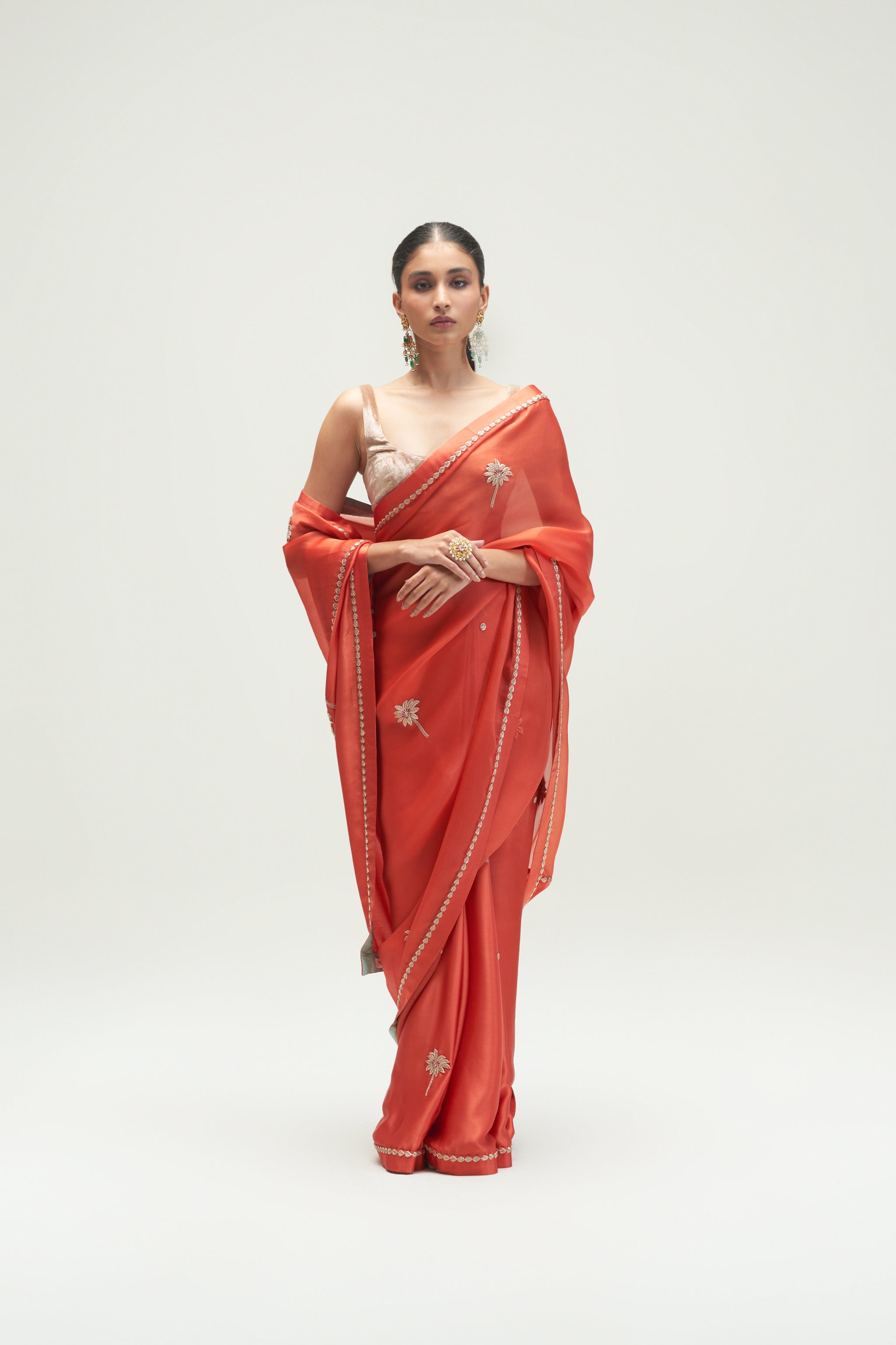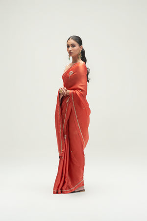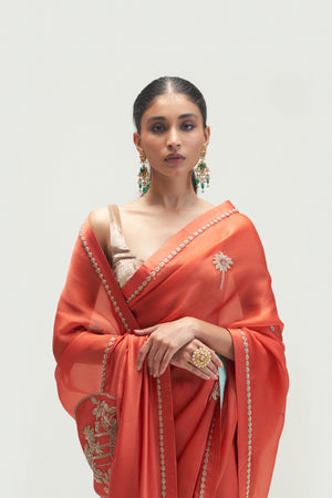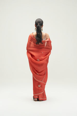 • Coconut Palm Embroidered Rust Saree