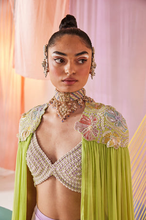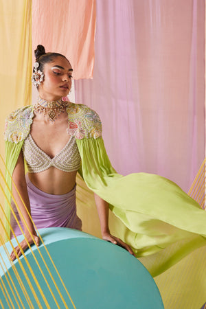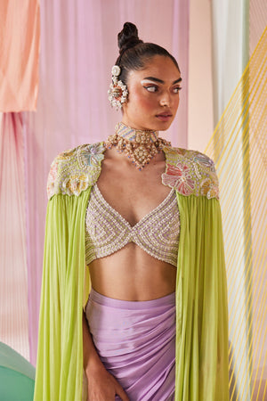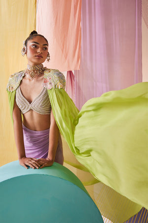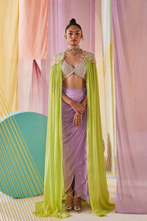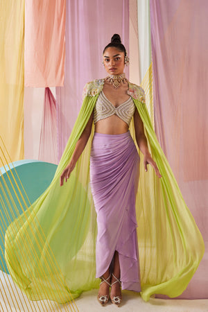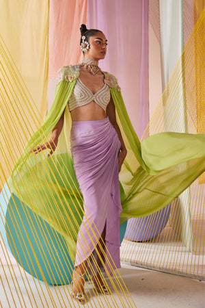 • Components: Crop Top, Drape Skirt, Cape (3)