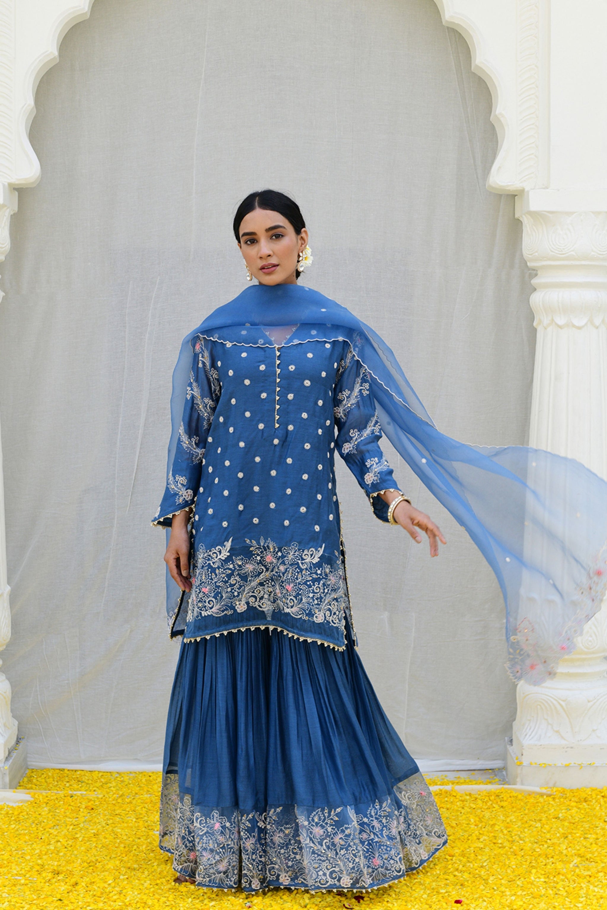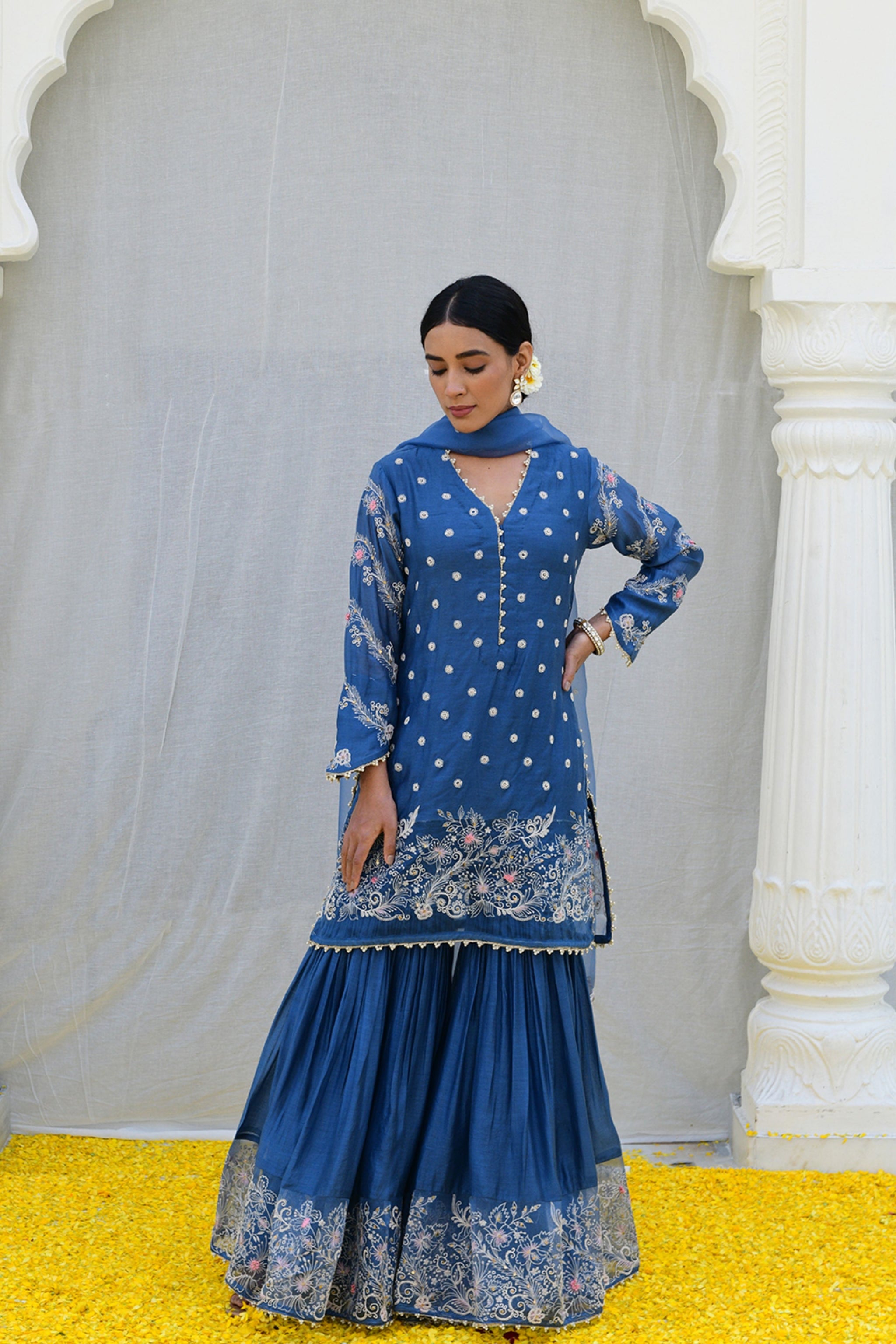 • Components: Sharara, Dupatta, Kurta (3)