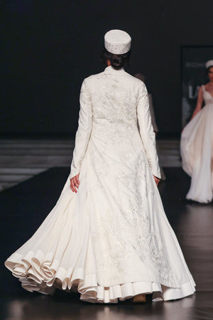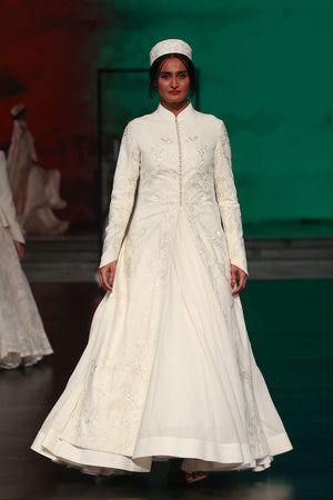 • Elevate your style with this exquisite long jacket, crafted from luxurious matka silk. The jacket features intricate resham thread work and delicate hand embroidery, adding a touch of artisanal charm. Enhances comfort while showcasing a premium finish, making this piece perfect for any occasion that calls for elegance and sophistication.