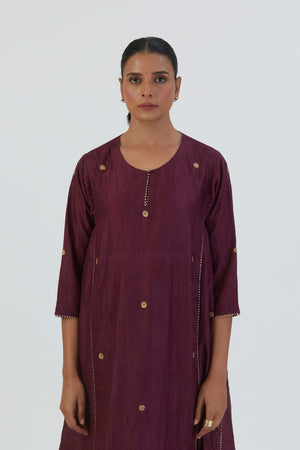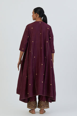 LAJJ-201-ROUND GATHERED BUTTI WITH ZARDOSI PANTS(WINE)