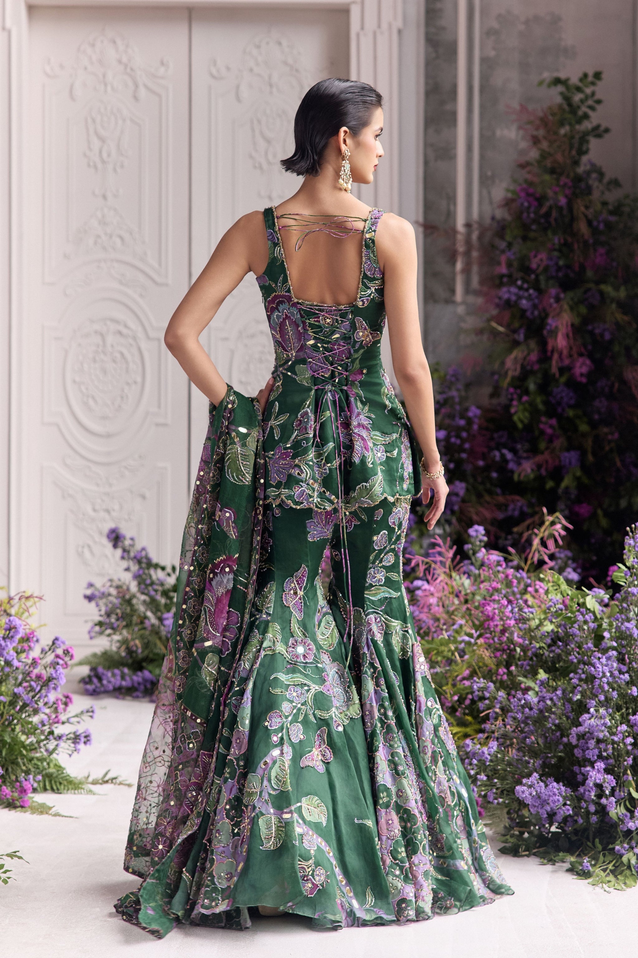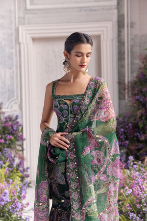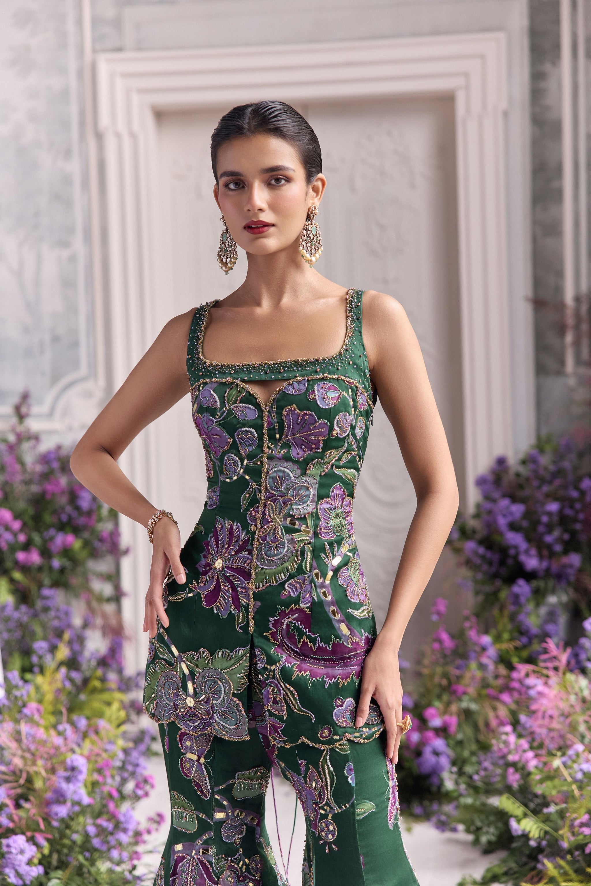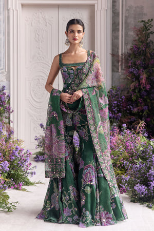 • Heavy hand embroidered short kurta paired with embroidered sharara and dupatta
