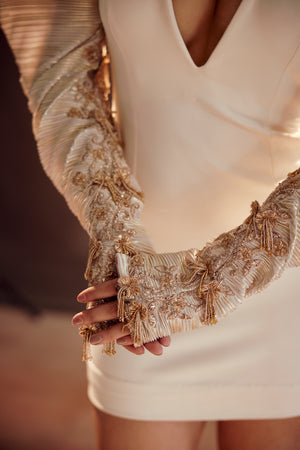 Care: Dry Clean Only. As garments are handmade and handwoven, natural variations in colours and weaves are a characteristic of the textile, and may be found in the finished garments as well.