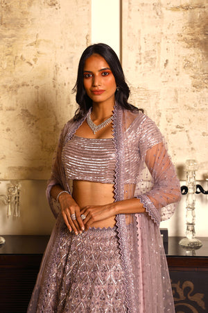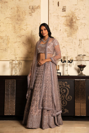 • Heavy embroidery lehenga, blouse with cutwork dupatta.
