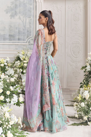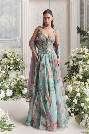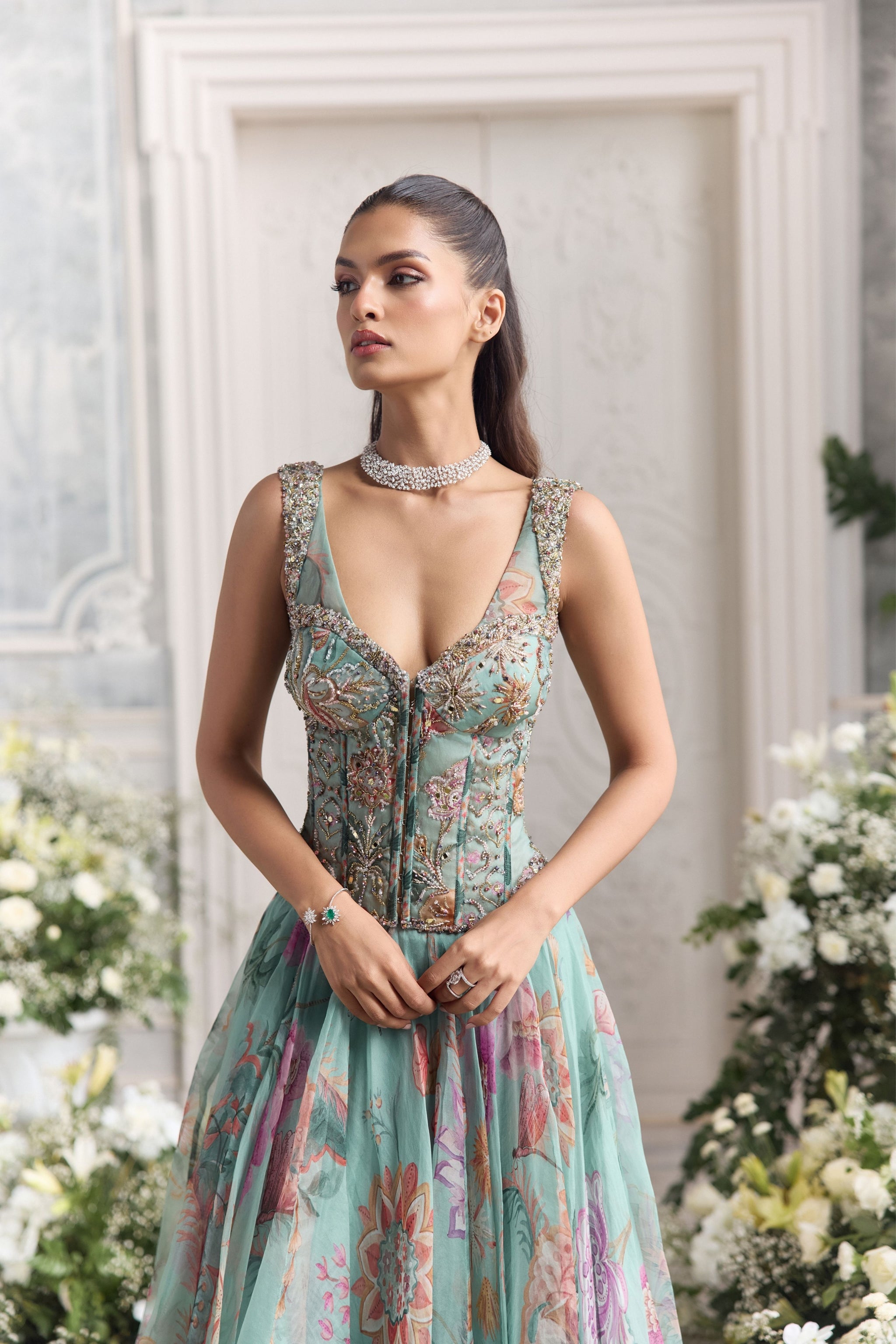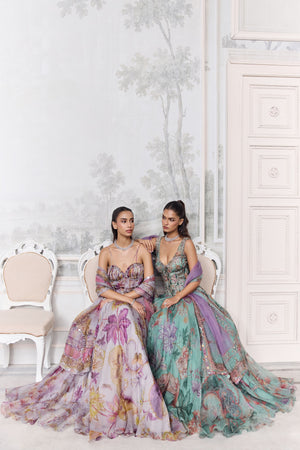• Hand embroidered corset anarkali paired with embroidered dupatta