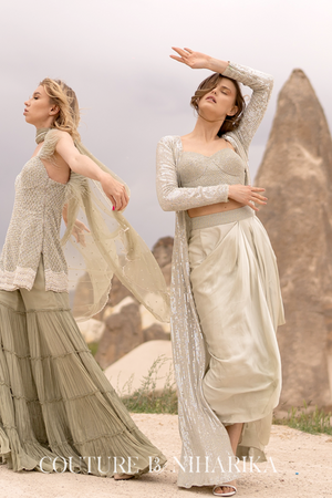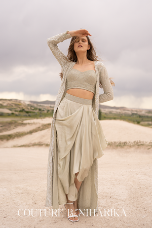 Silver Moti Work Jacket Set