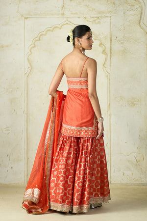 • Fabric: Kurta & Sharara - Tussar, Dupatta- Organza