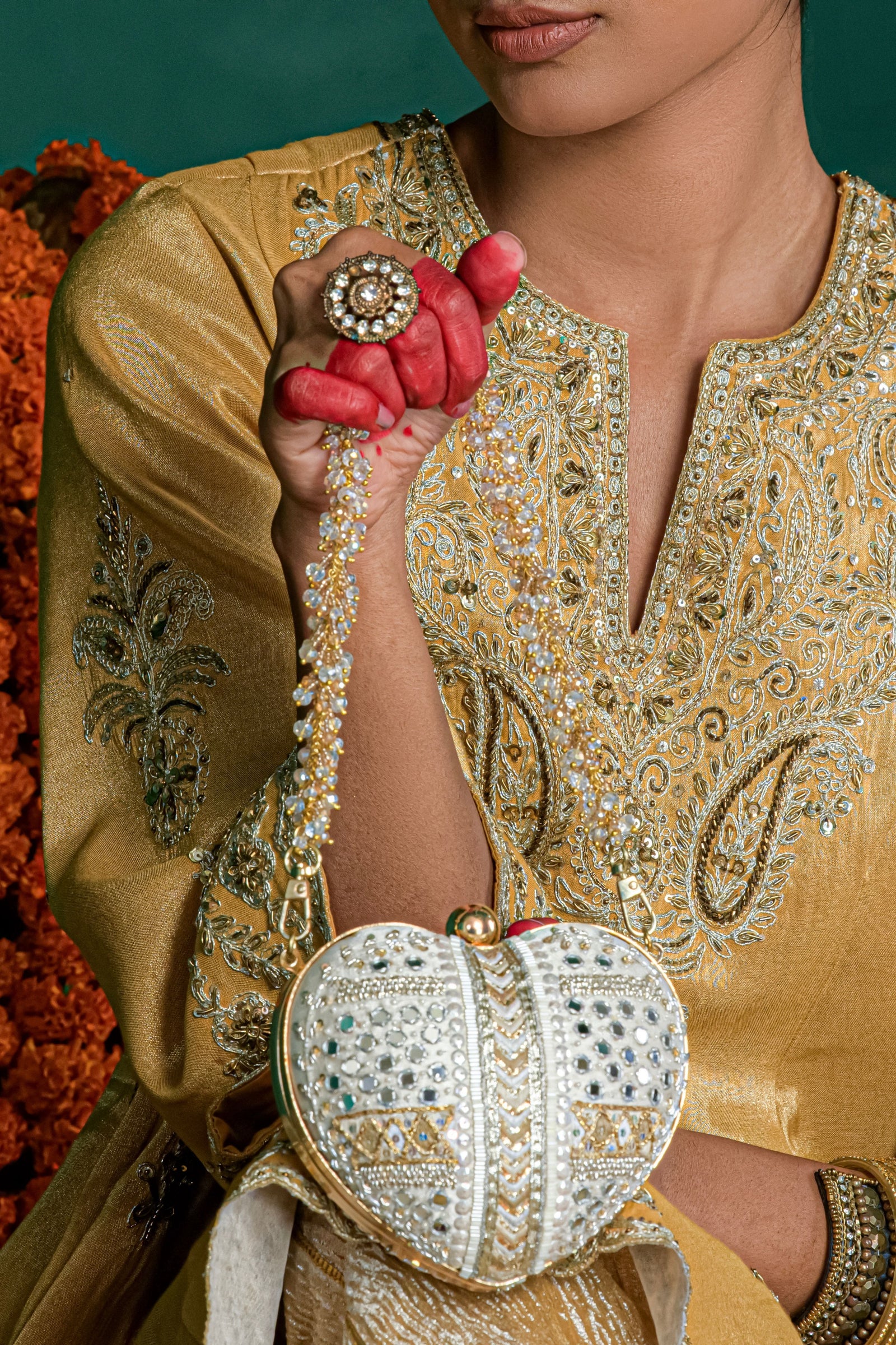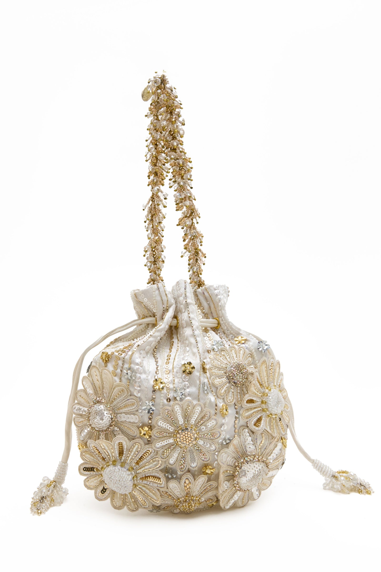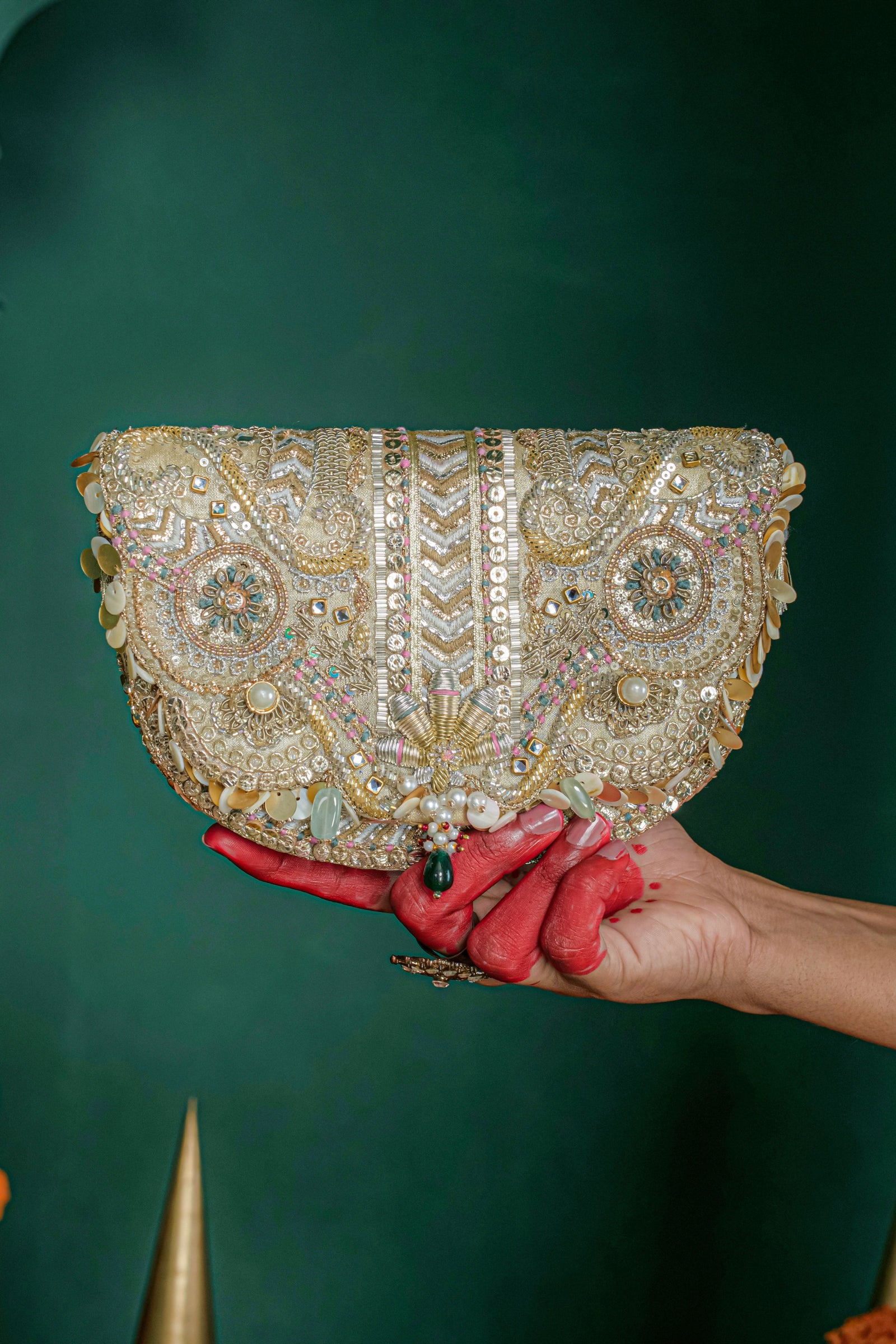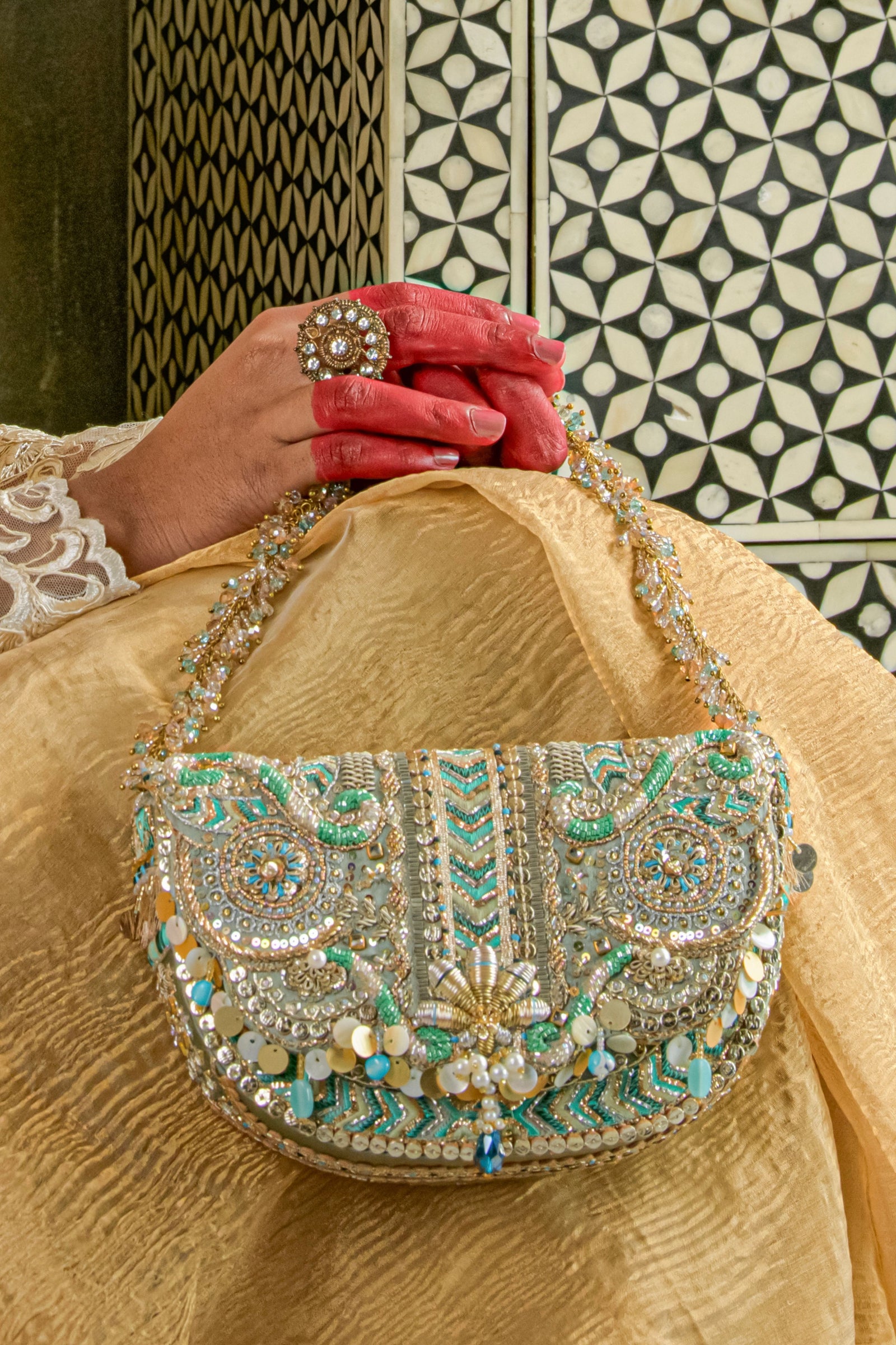 • fully handfully hand-embroidered and handmade by our master artisans – secured with clasp frame closure. – Silver finished hardware – lined with luxe microfiber lining – featuring heat embossed logo insideor