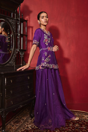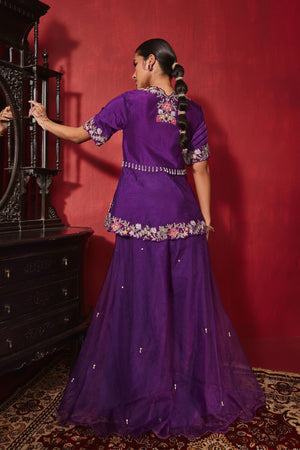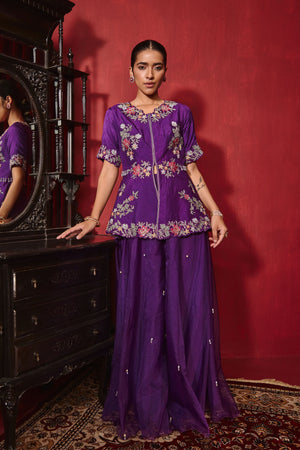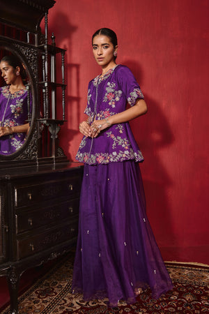 • Short embroidered a line style jacket with a delicate bead work sharara