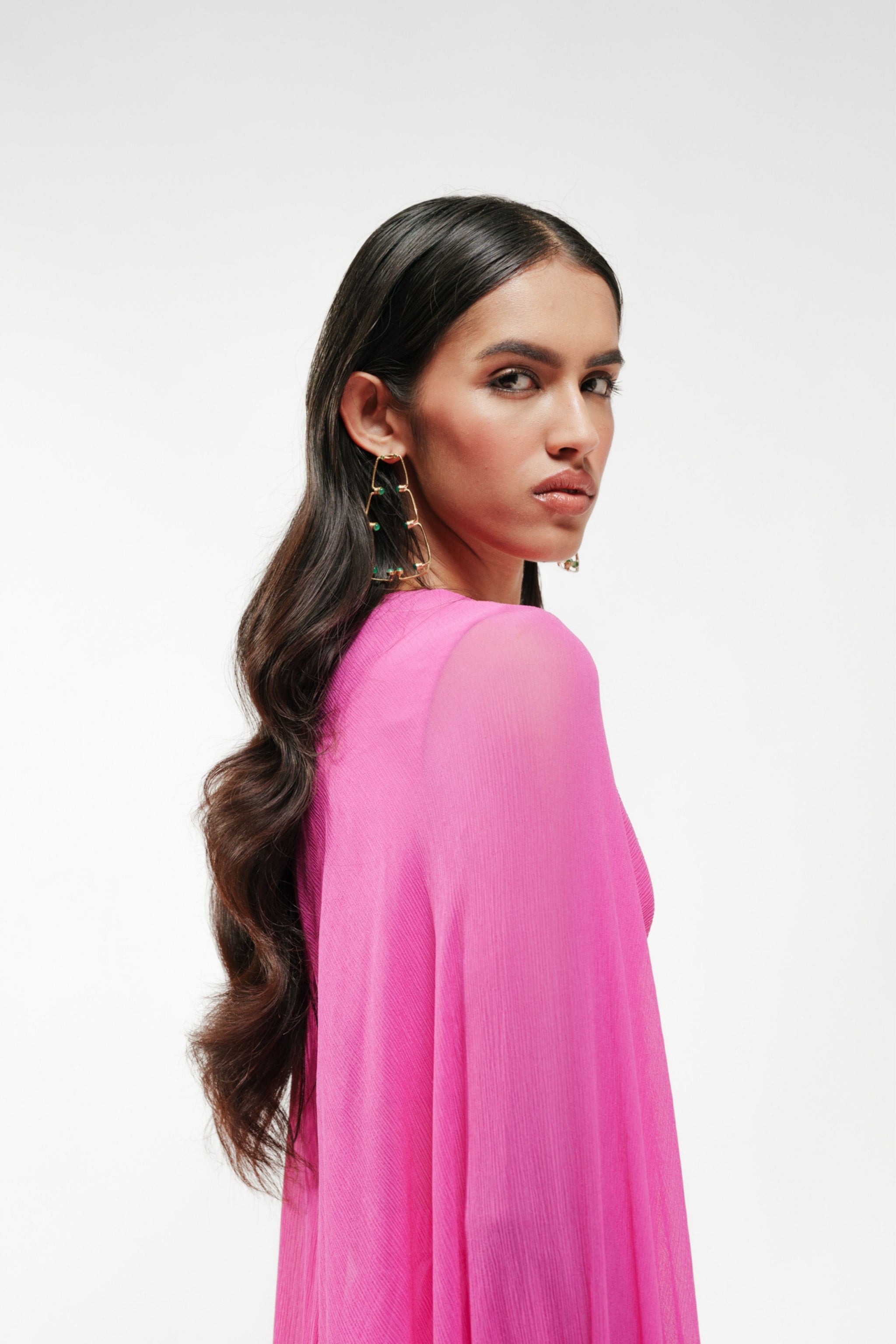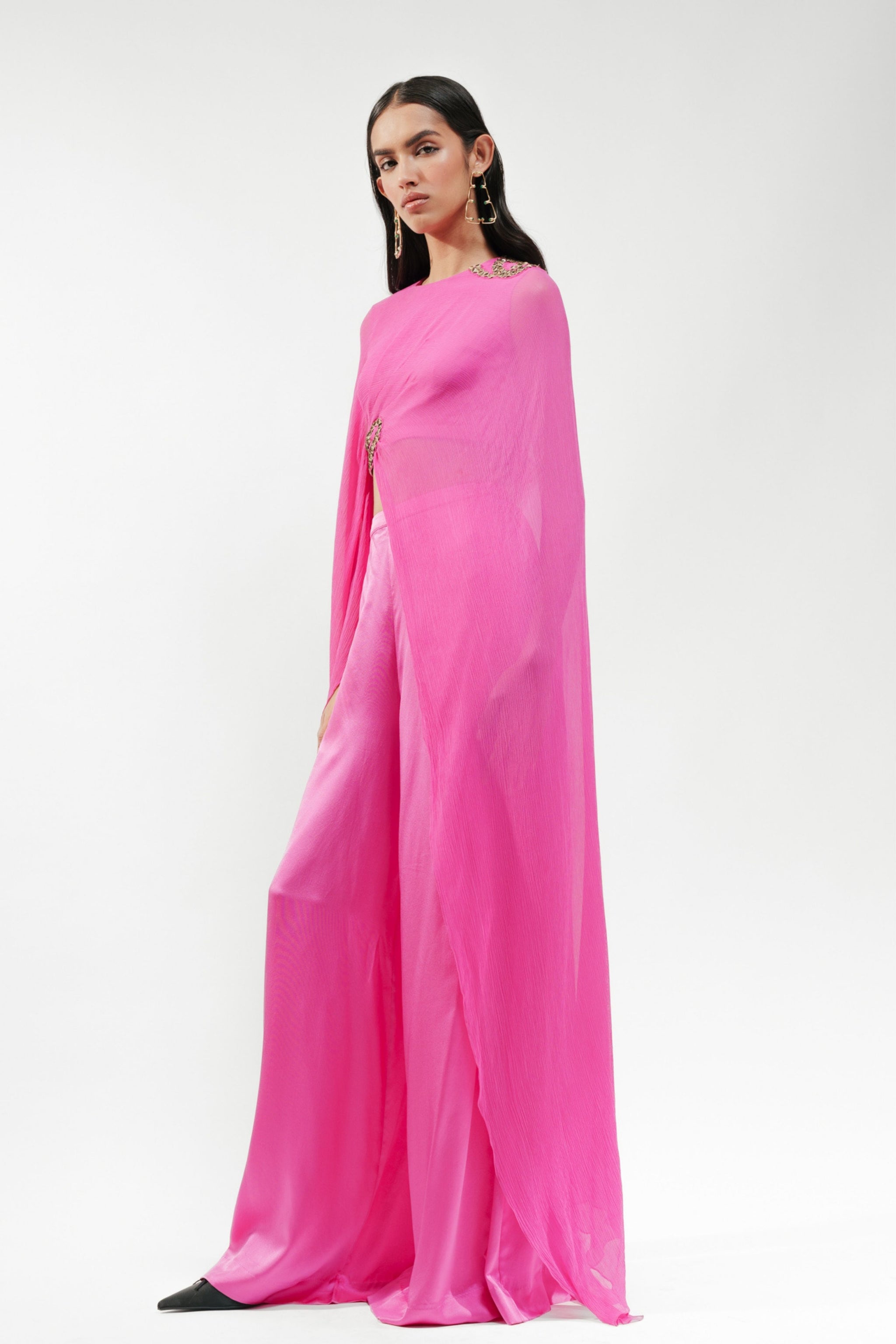 • A statement cape-style dupatta paired with trousers, blending fluidity with form.