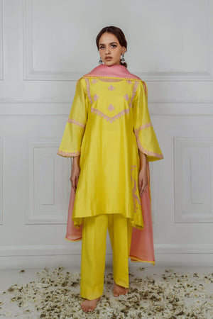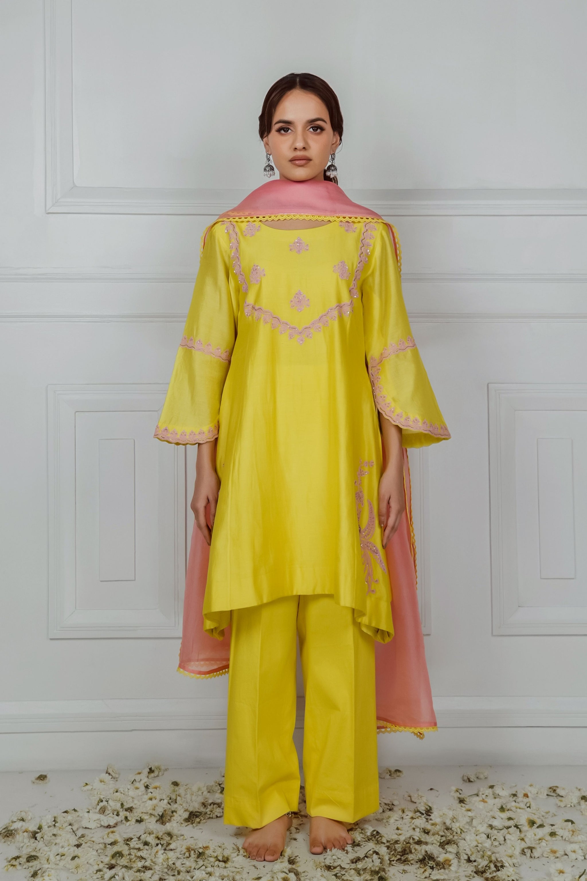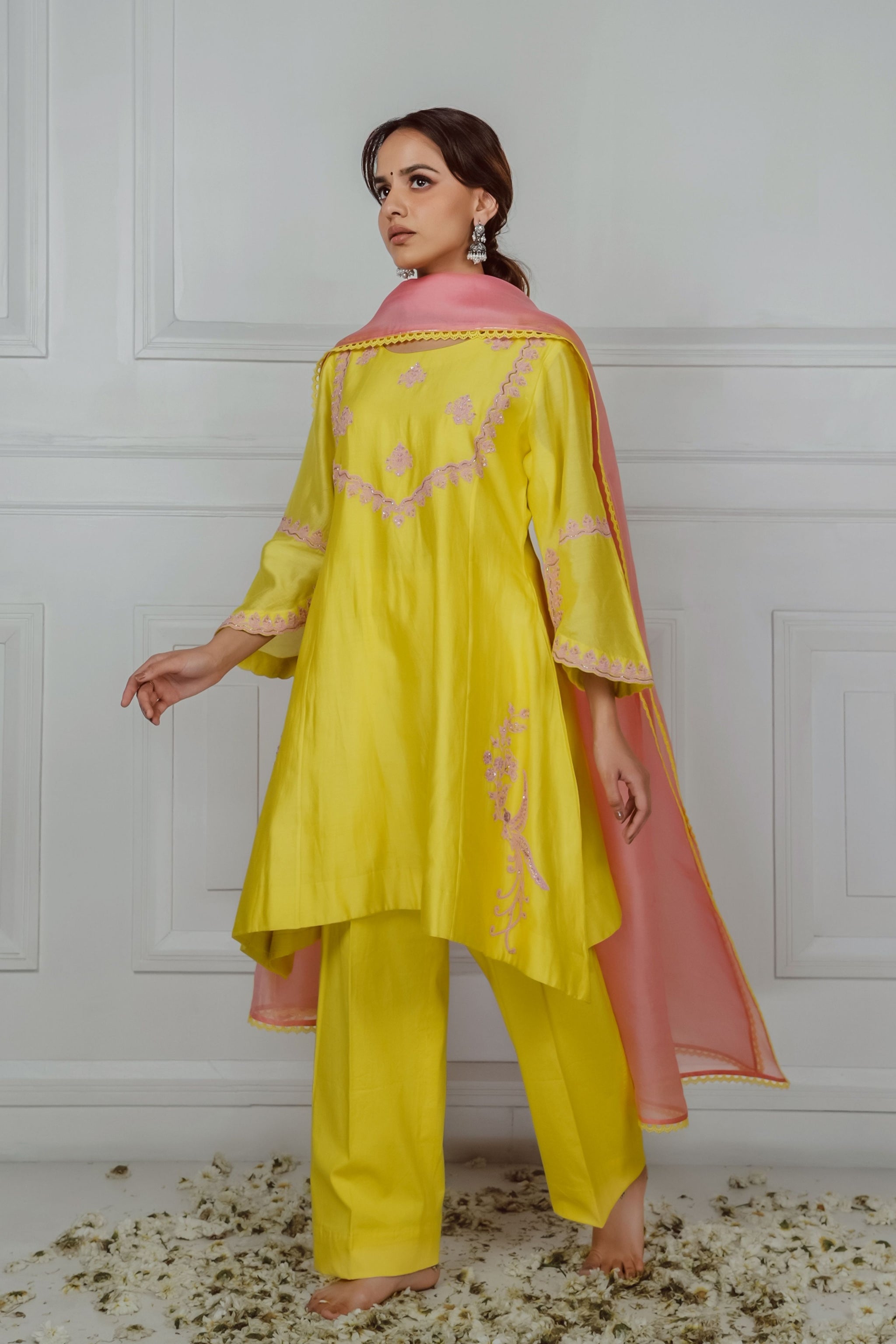 • Featuring our signature contrast thread embroidery on handwoven chanderi silk.