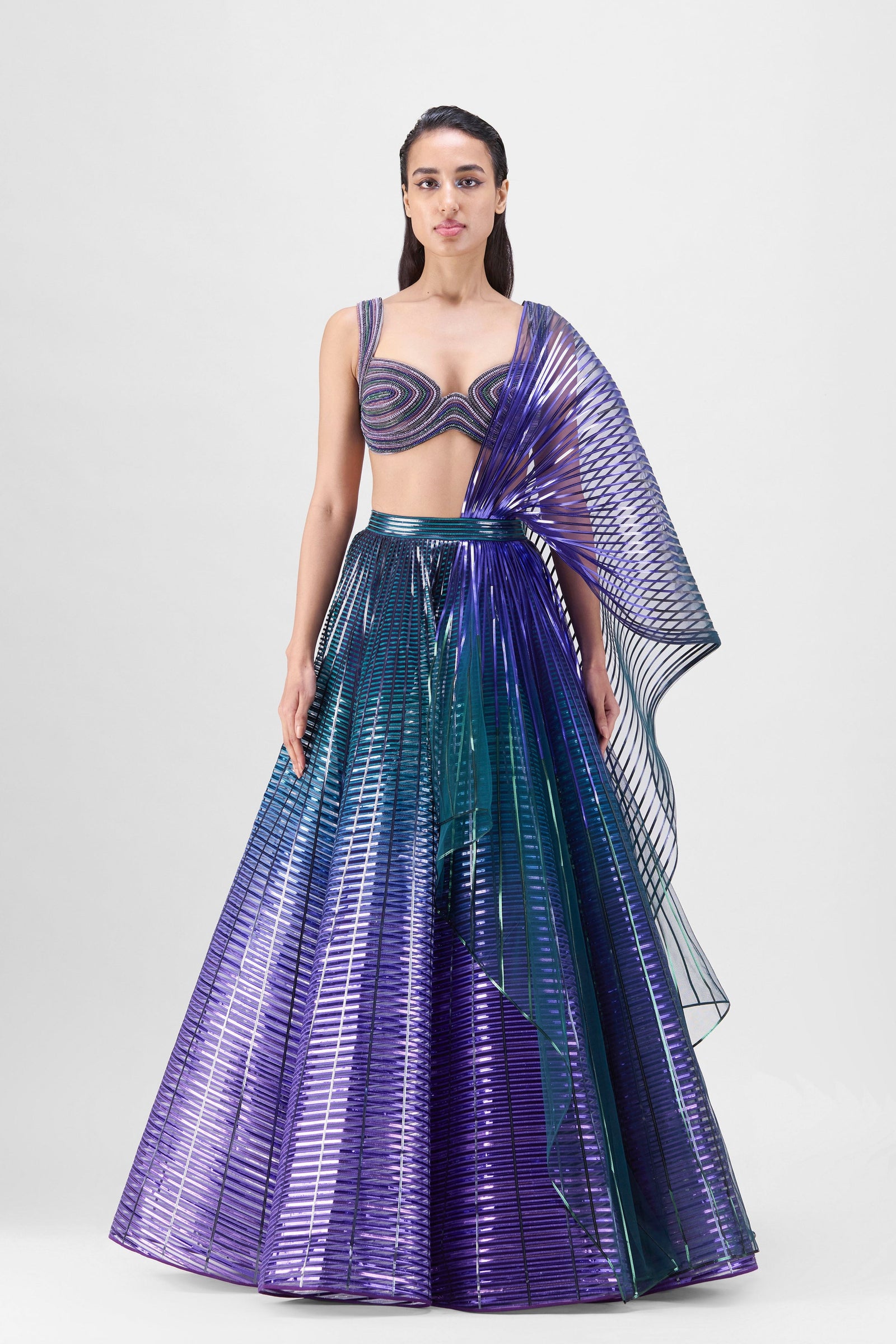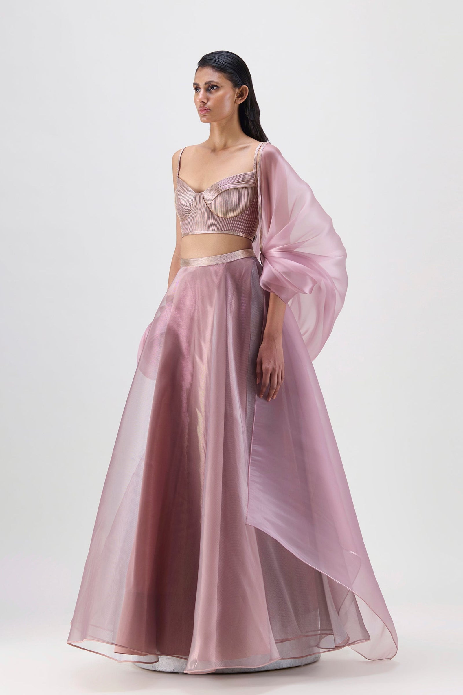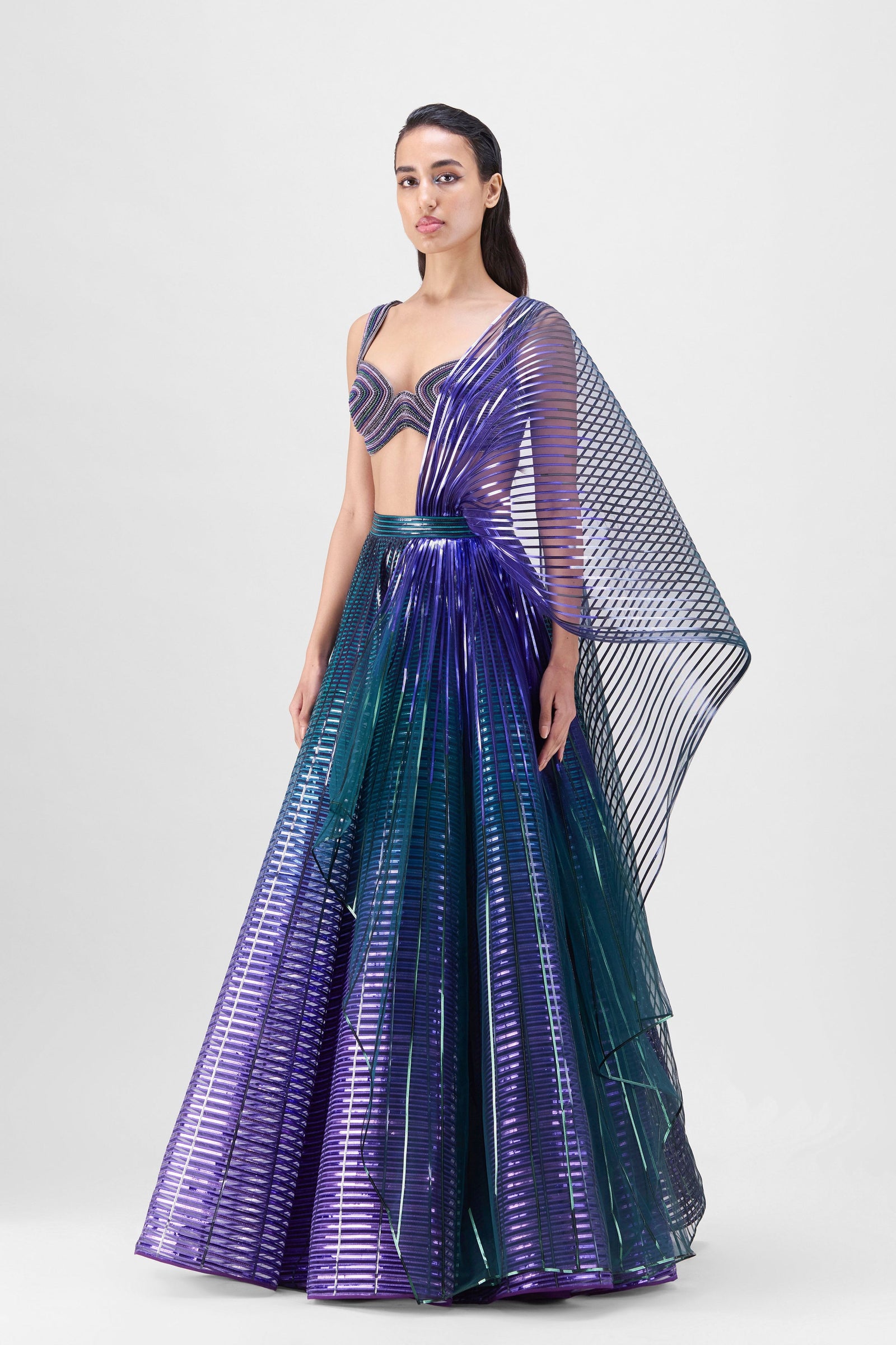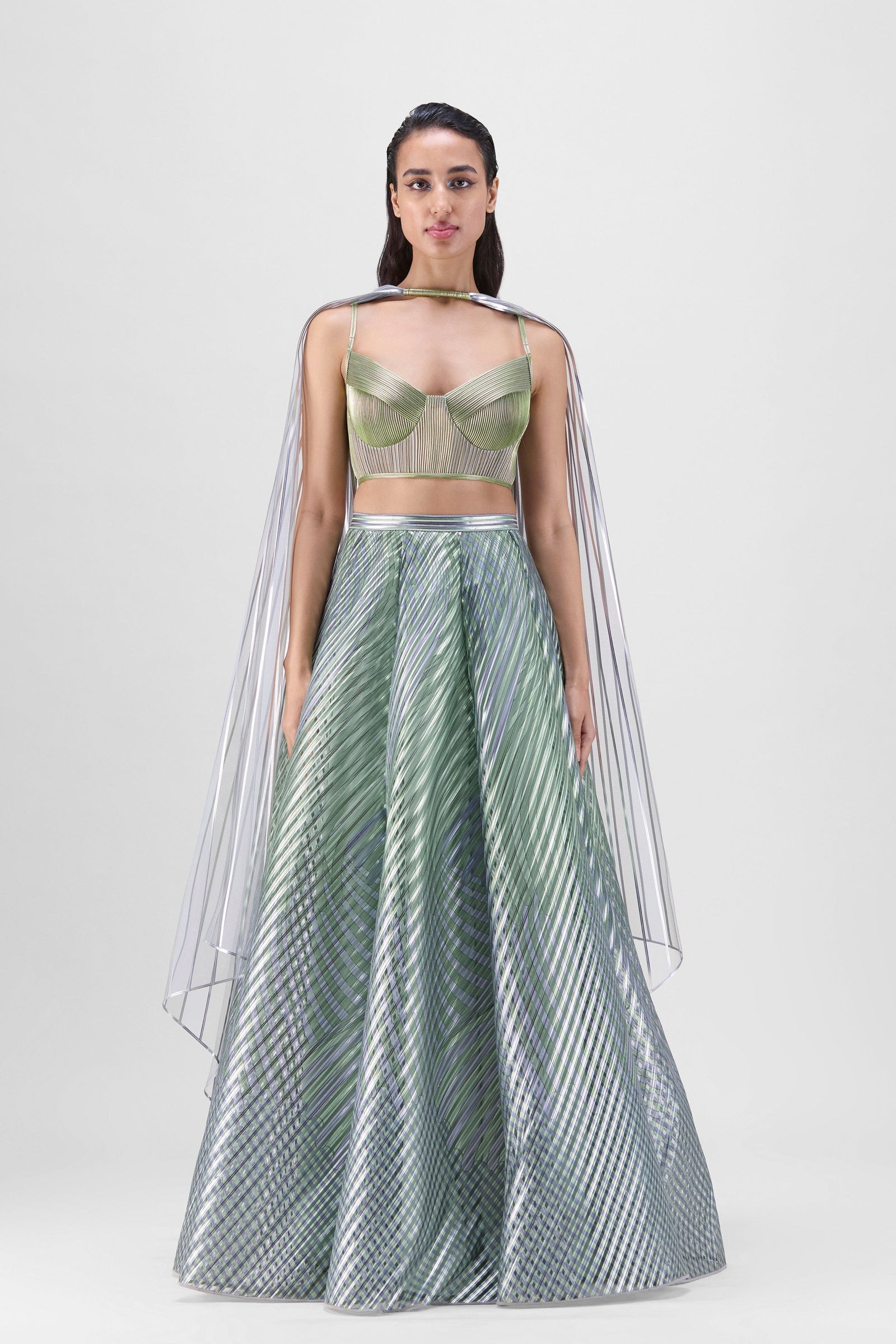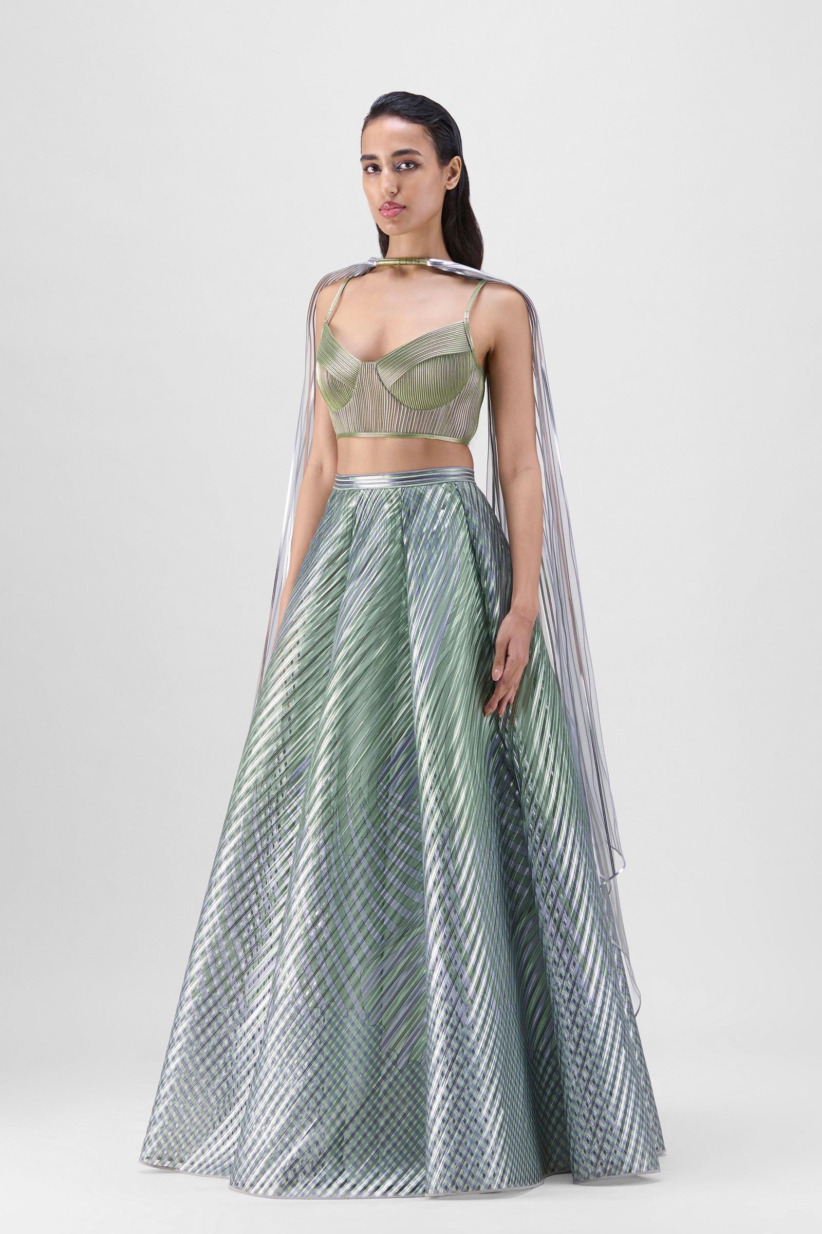 • Strata micro pleated structured bustier with plisse skirt and palla
