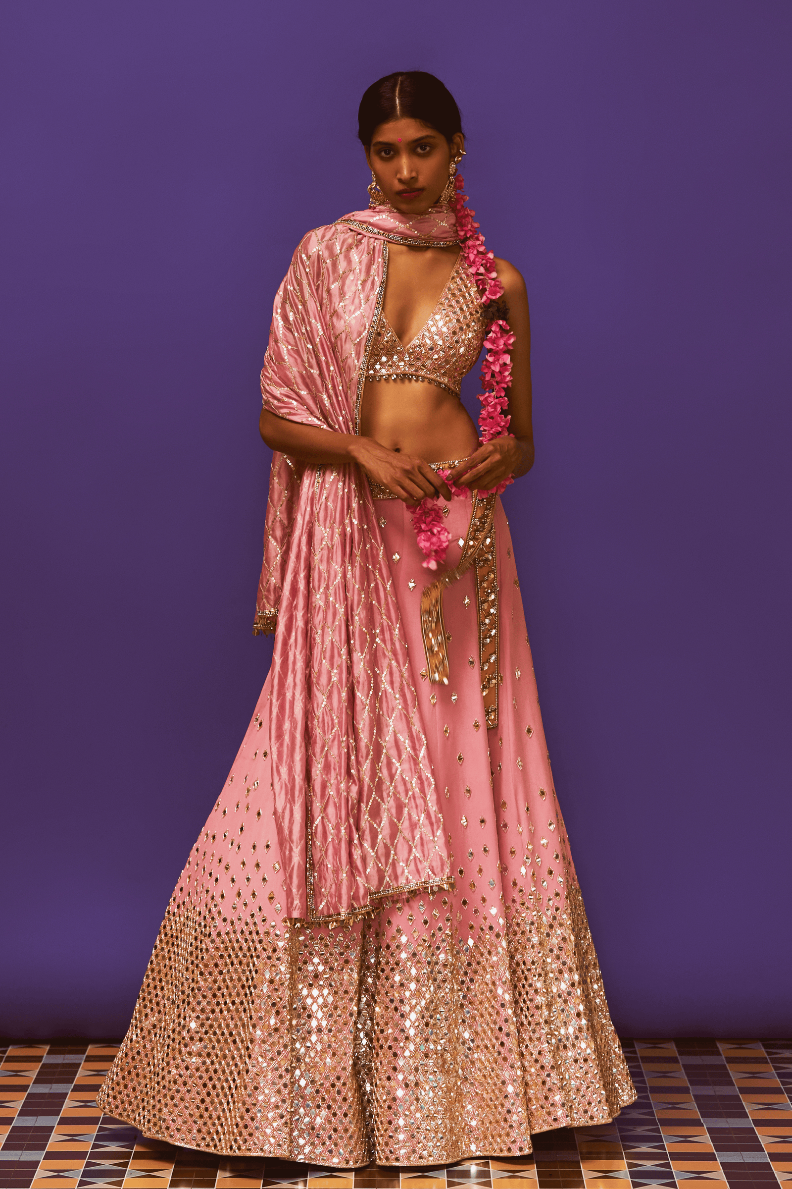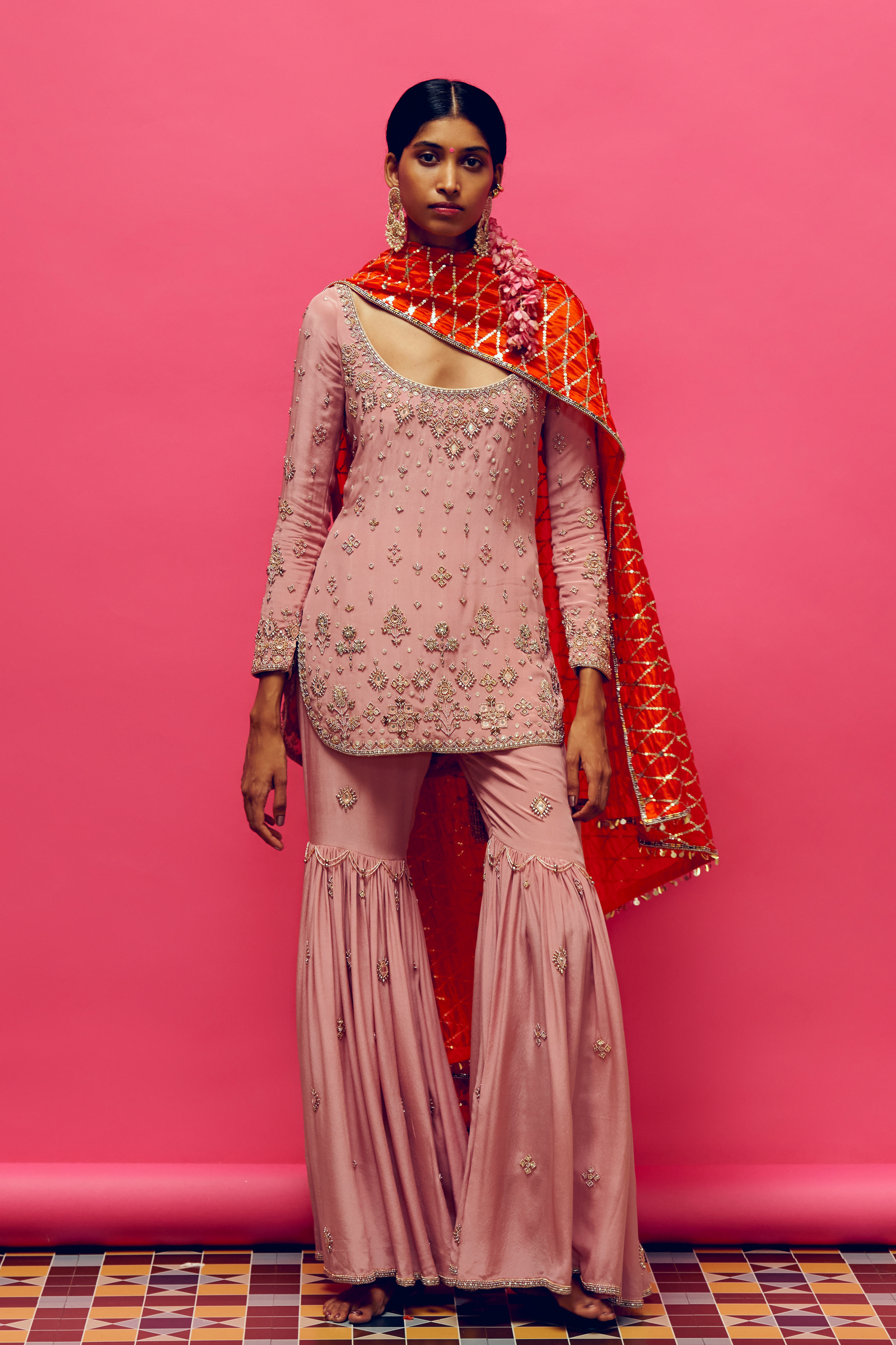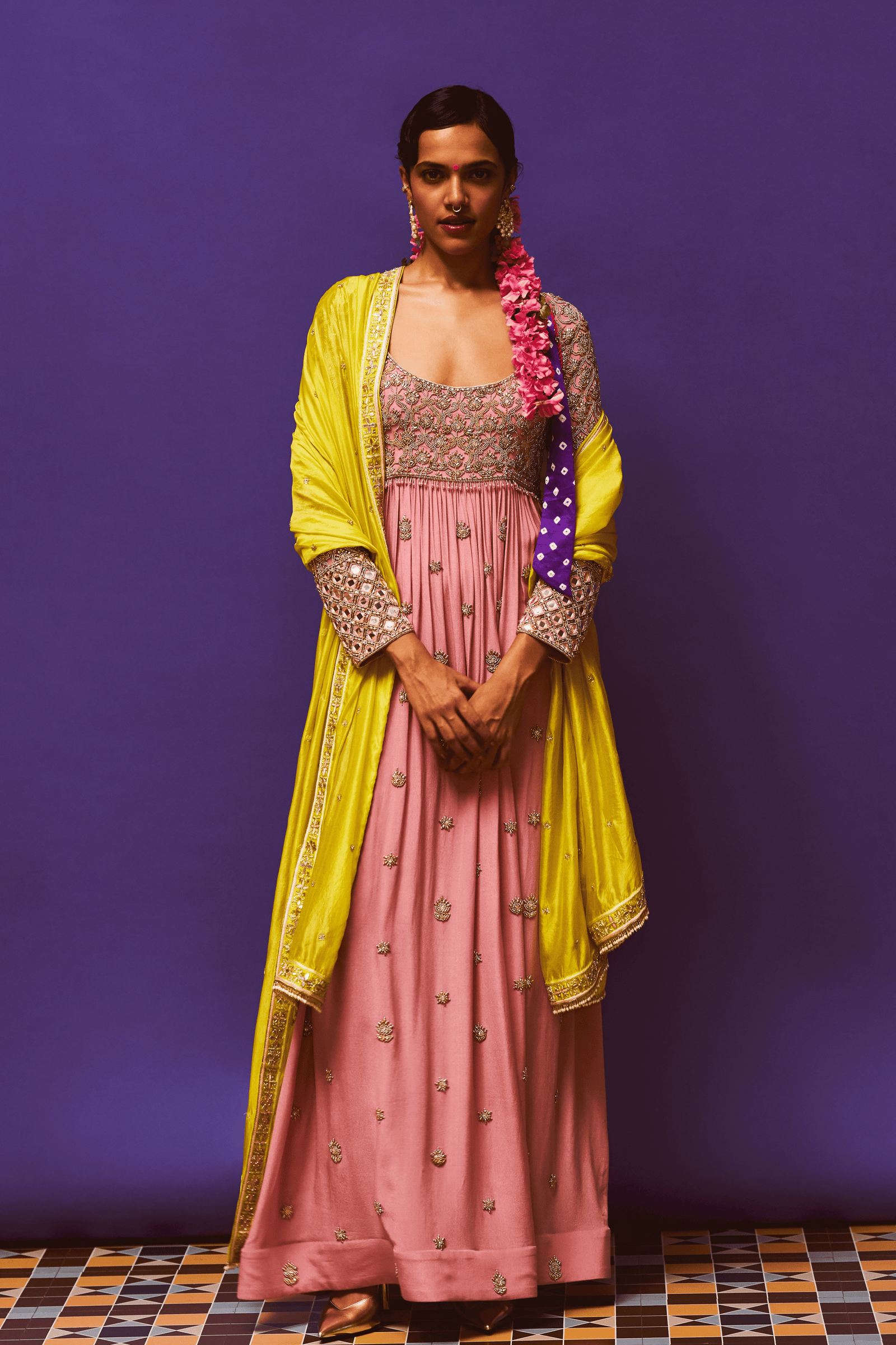 Rose Pink Embroidered Anarkali Set