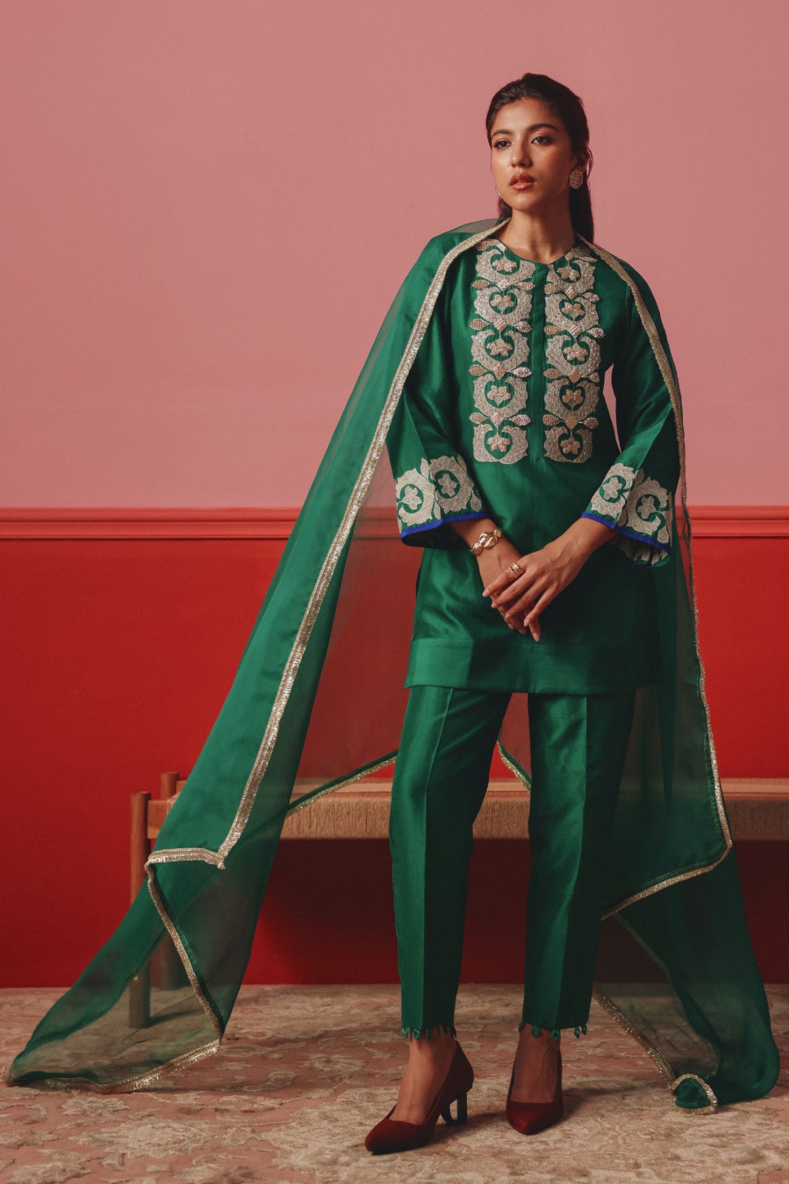Care: Dry Clean Only. As garments are handmade and handwoven, natural variations in colours and weaves are a characteristic of the textile, and may be found in the finished garments as well.