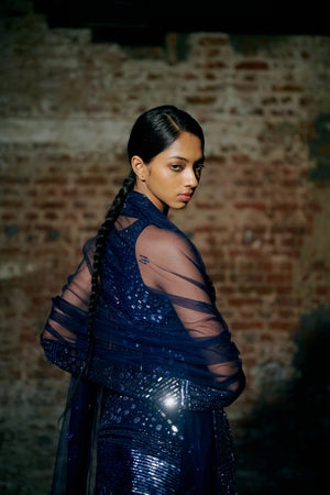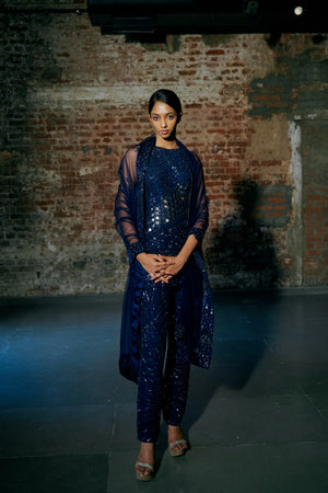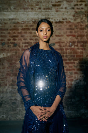 • Stream navy blue hand embroidered kurta and pant with hand embroidered dupatta
