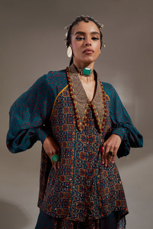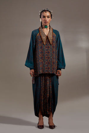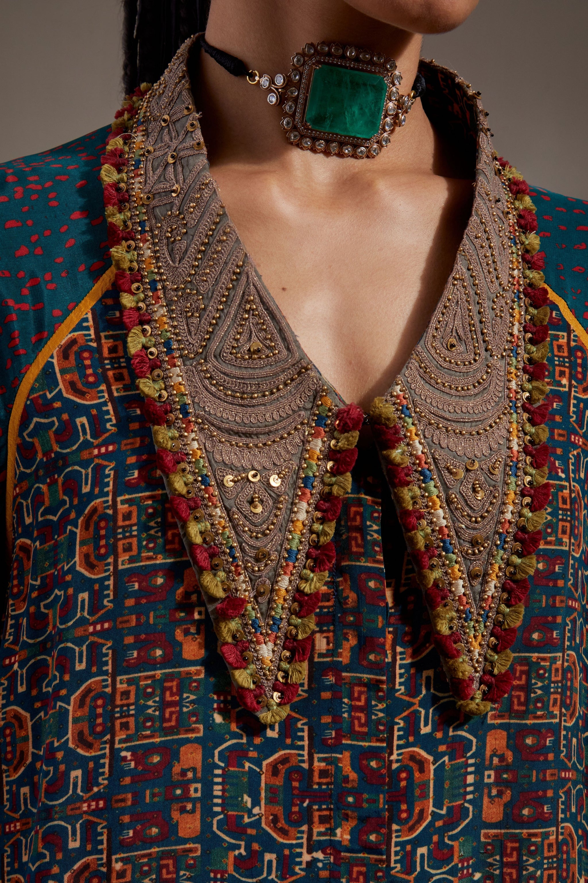 • Tribal print straight shirt with embroidered collar. Front- 29" back- 32"