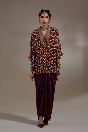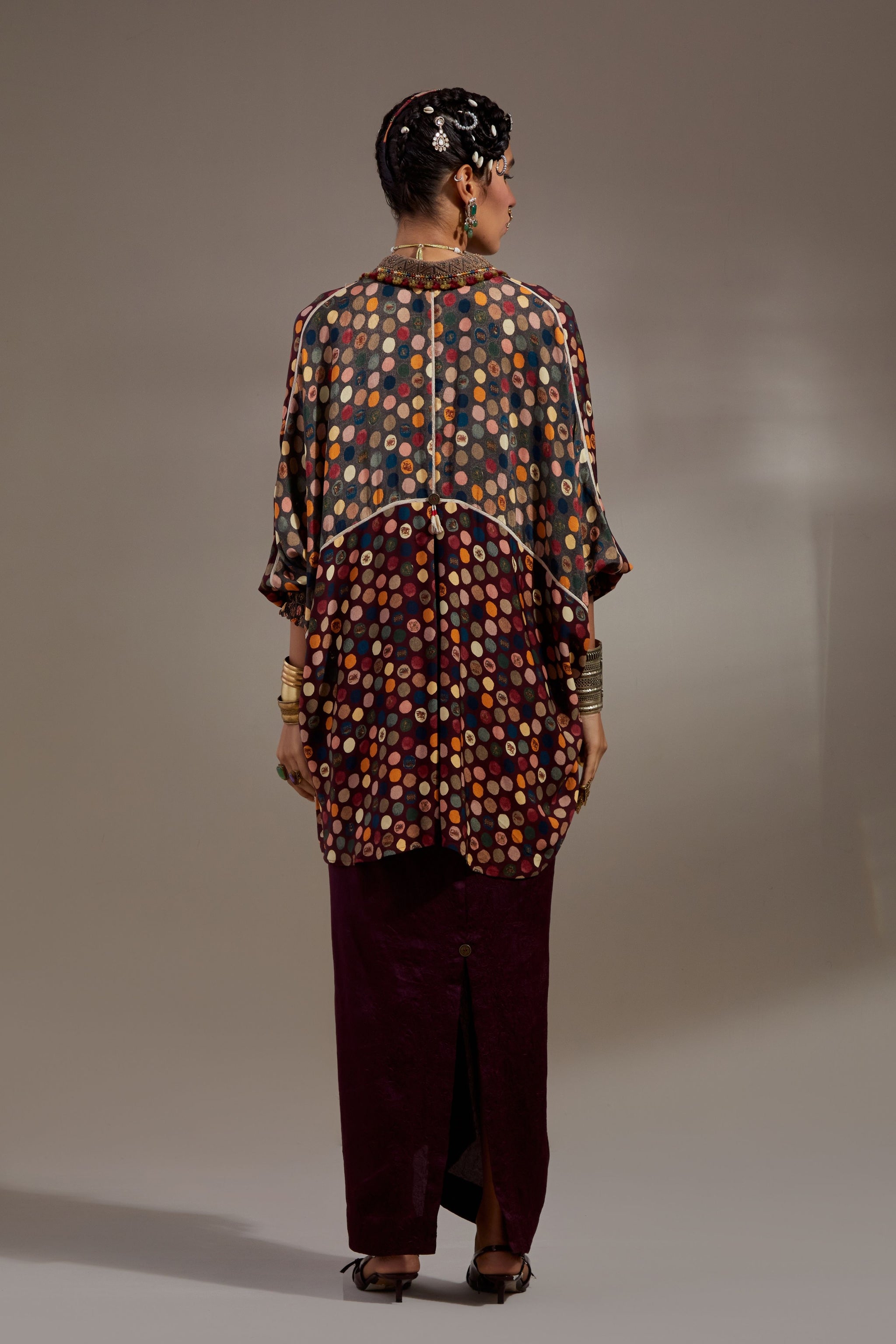 • Polka print free size shirt with embroidered collar. Front- 29" back- 32"