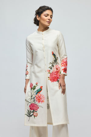Care: Dry Clean Only. As garments are handmade and handwoven, natural variations in colours and weaves are a characteristic of the textile, and may be found in the finished garments as well.