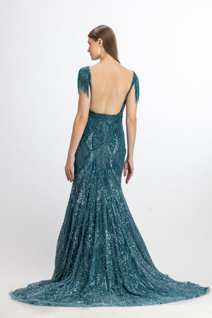 • Bring out your inner diva in our classic Bhawna Rao gown. Cobalt blue embroidered gown with tone and tone of embroidery with intricate geometric artwork, employing finest beads and crystal. The gown enhances your body with an elaborate trail and goddess like look.