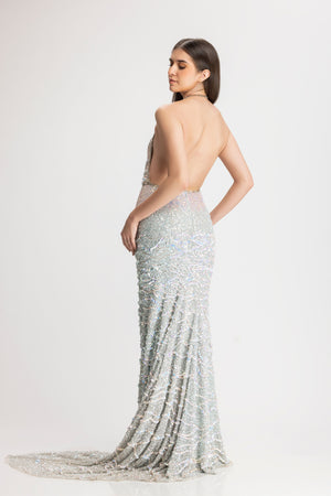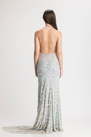 • This alluring Bhawna Rao gown with finest details on extra ordinary halter-neck. The gracefully embroidered bodice with a complex wave pattern all over the bottom hand embroidered over Italian tulle. The perfect shade of pink and blue are used to embrace your presence at any cocktail party.