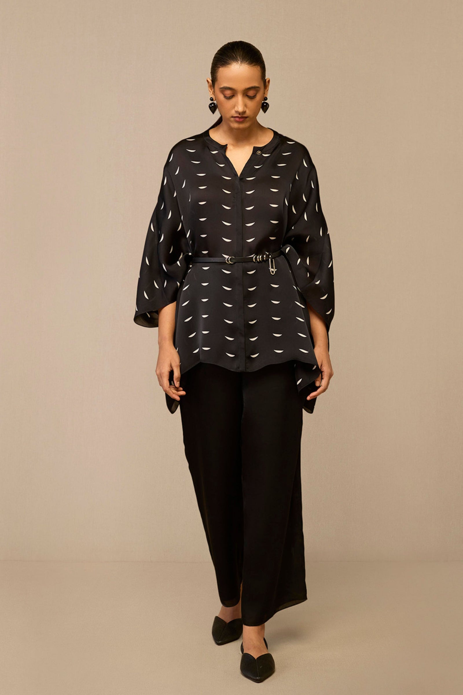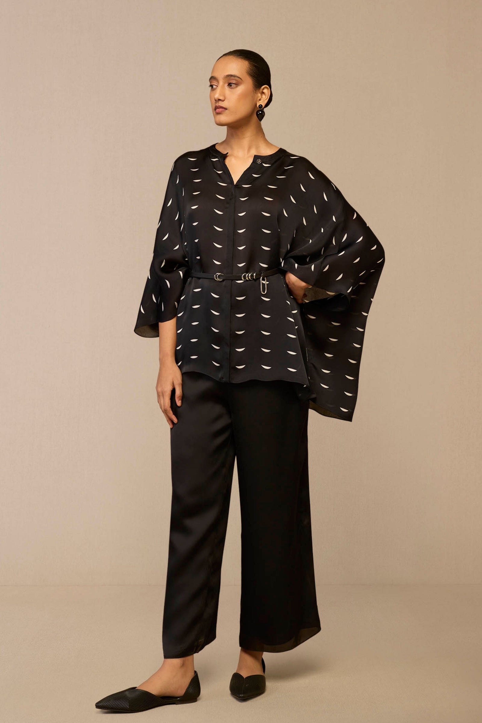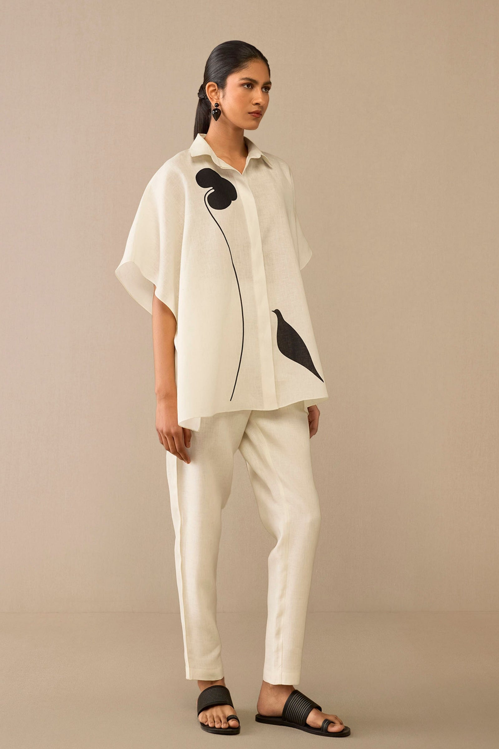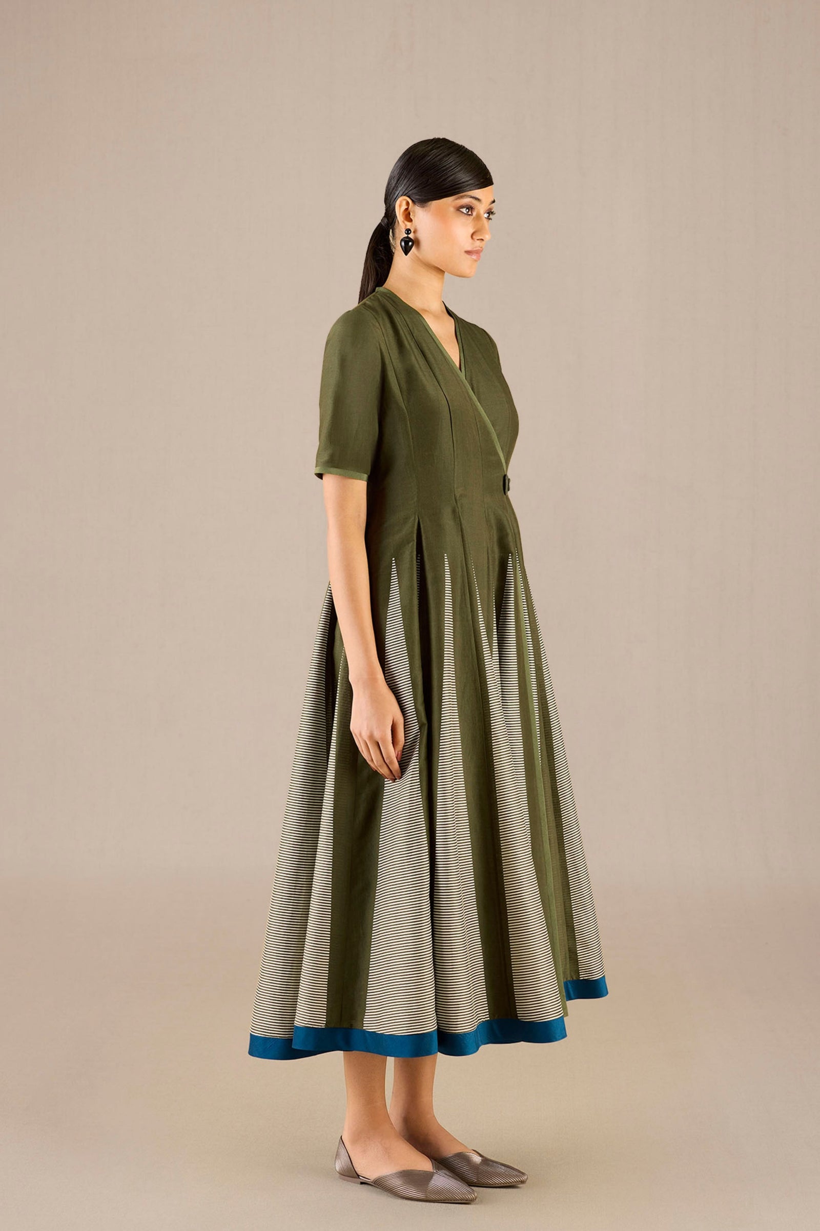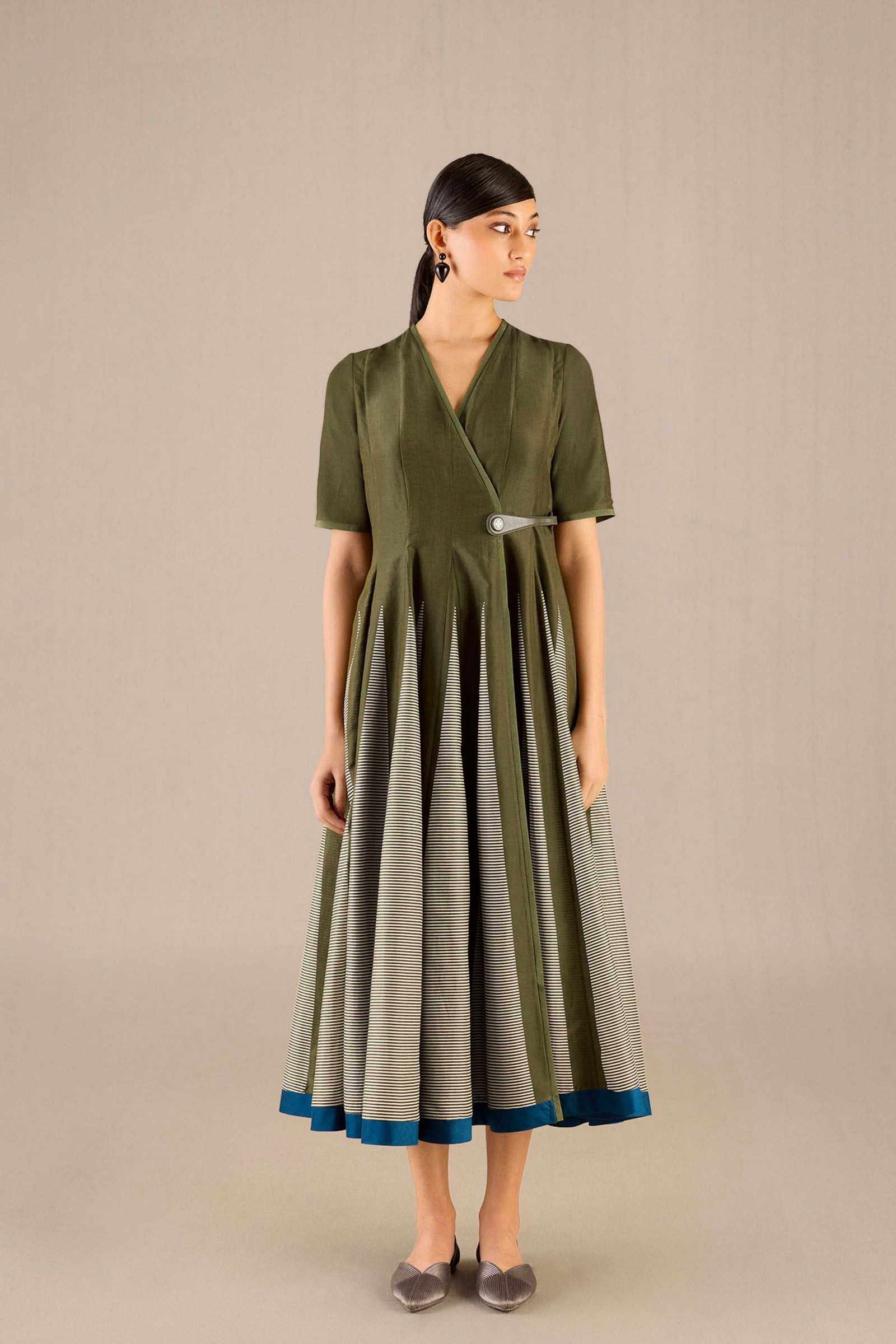 • The casual elegance of the Arzu jacket set is enhanced by delicate resham embroidery, with leaves and flowers in the collection’s signature paan motif adorning the soft wool fabric. Fine scalloped edges that were carefully cut by hand and subtle dori embroidery lend an exquisite finish along the hem. A matching dress in the softest wool comes with the set, with an asymmetrical drape and faux leather belt. Transition seamlessly from late breakfasts to winter night dinners with Arzu, a set that moves with you from AM to PM.