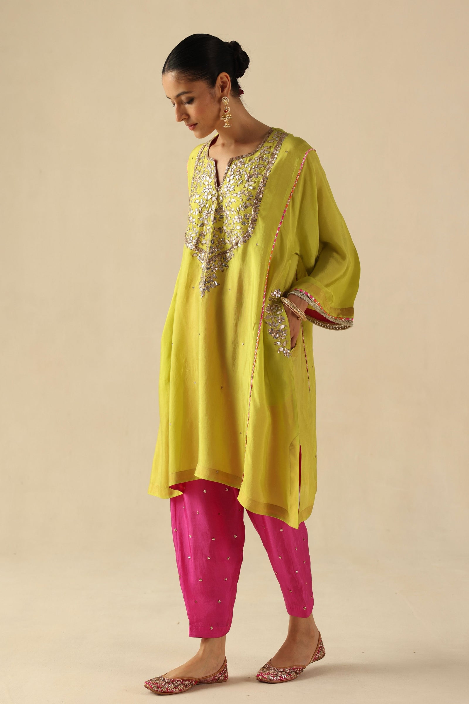 Care: Dry Clean Only. As garments are handmade and handwoven, natural variations in colours and weaves are a characteristic of the textile, and may be found in the finished garments as well.