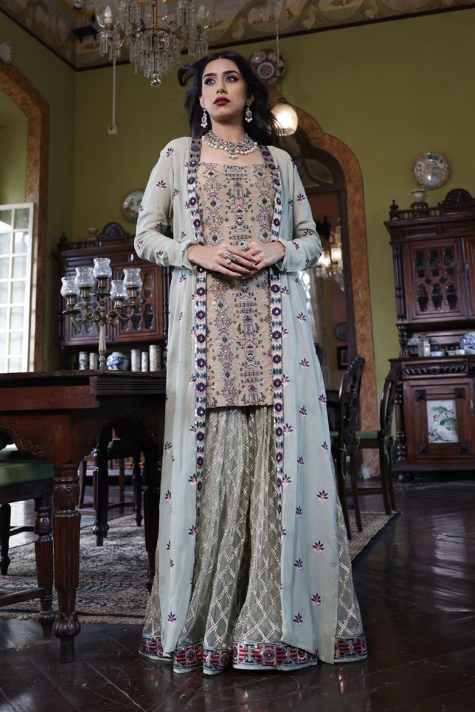 Care: Dry Clean Only. As garments are handmade and handwoven, natural variations in colours and weaves are a characteristic of the textile, and may be found in the finished garments as well.