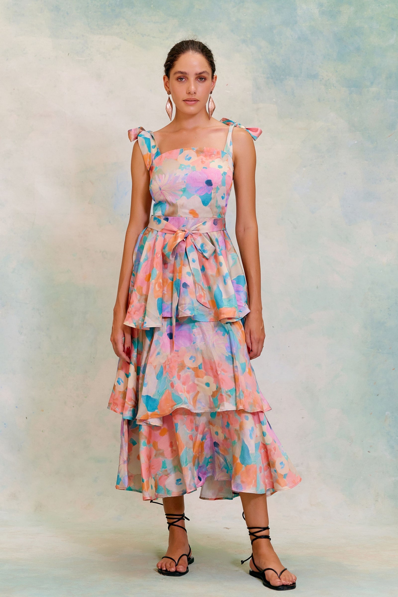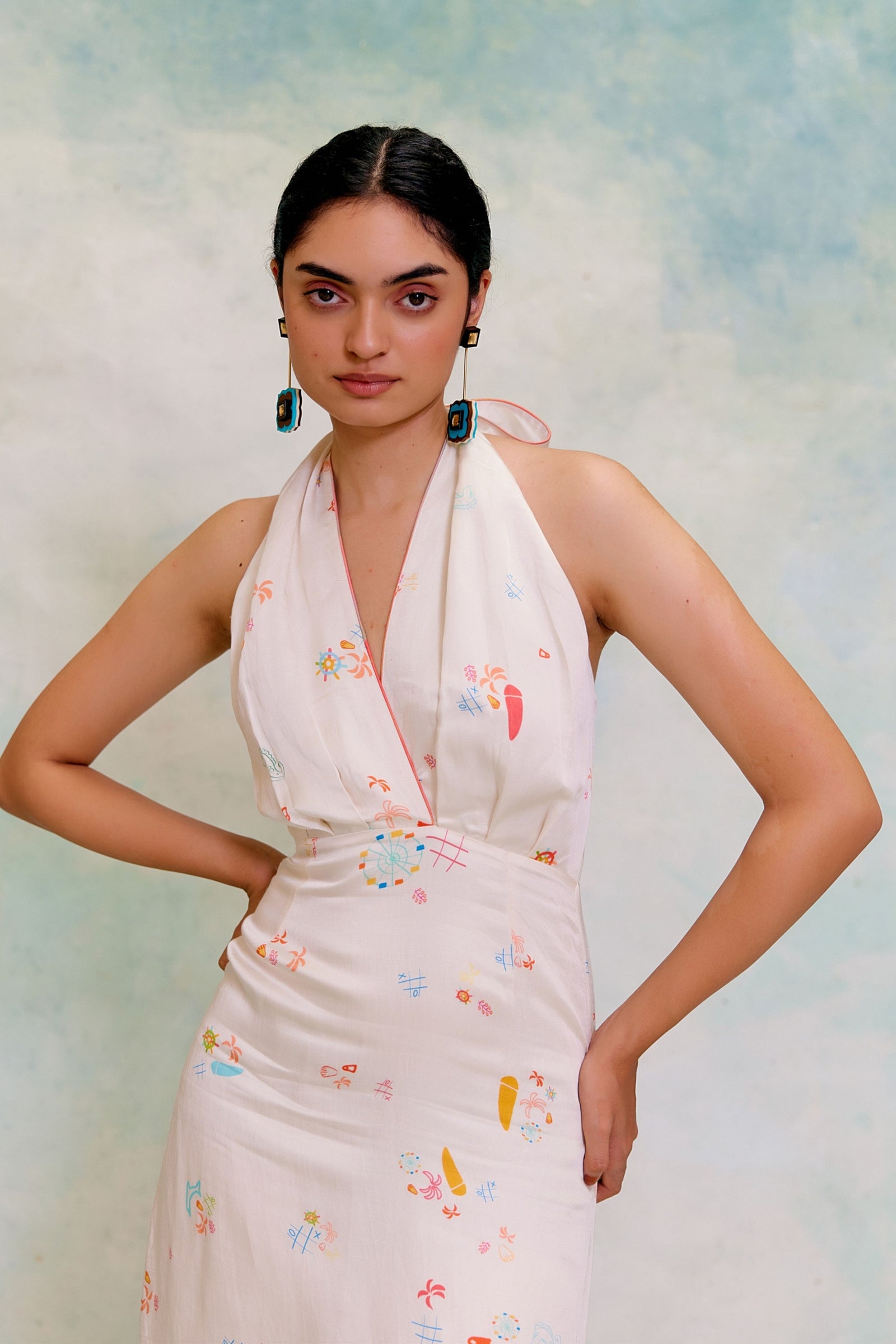 • The ember set, is crafted from a cotton linen blend with a pure cotton lining. The top features a stylish balloon cut effect, while the skirt offers a chic, flowy silhouette making it perfect for a leisurely resort day stroll.