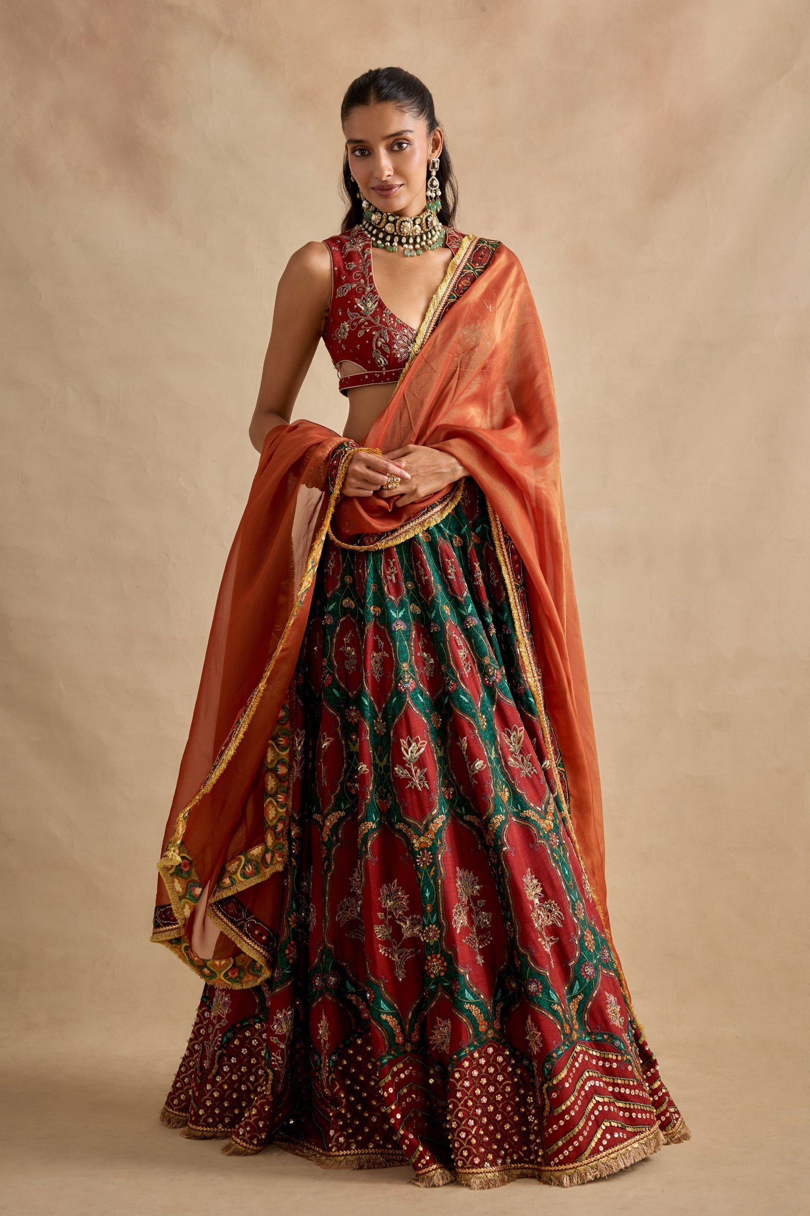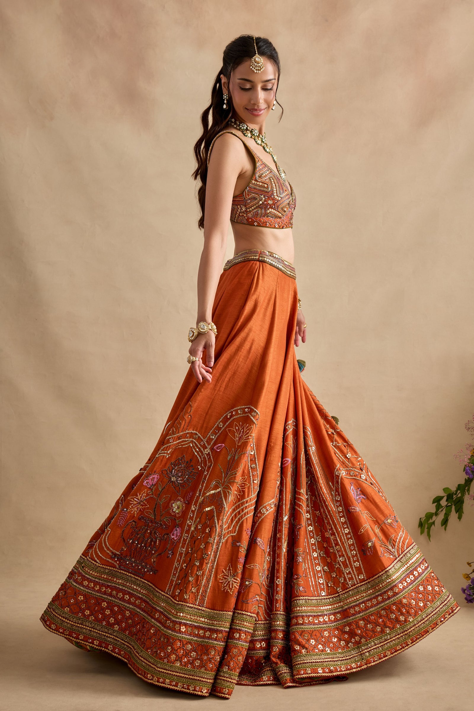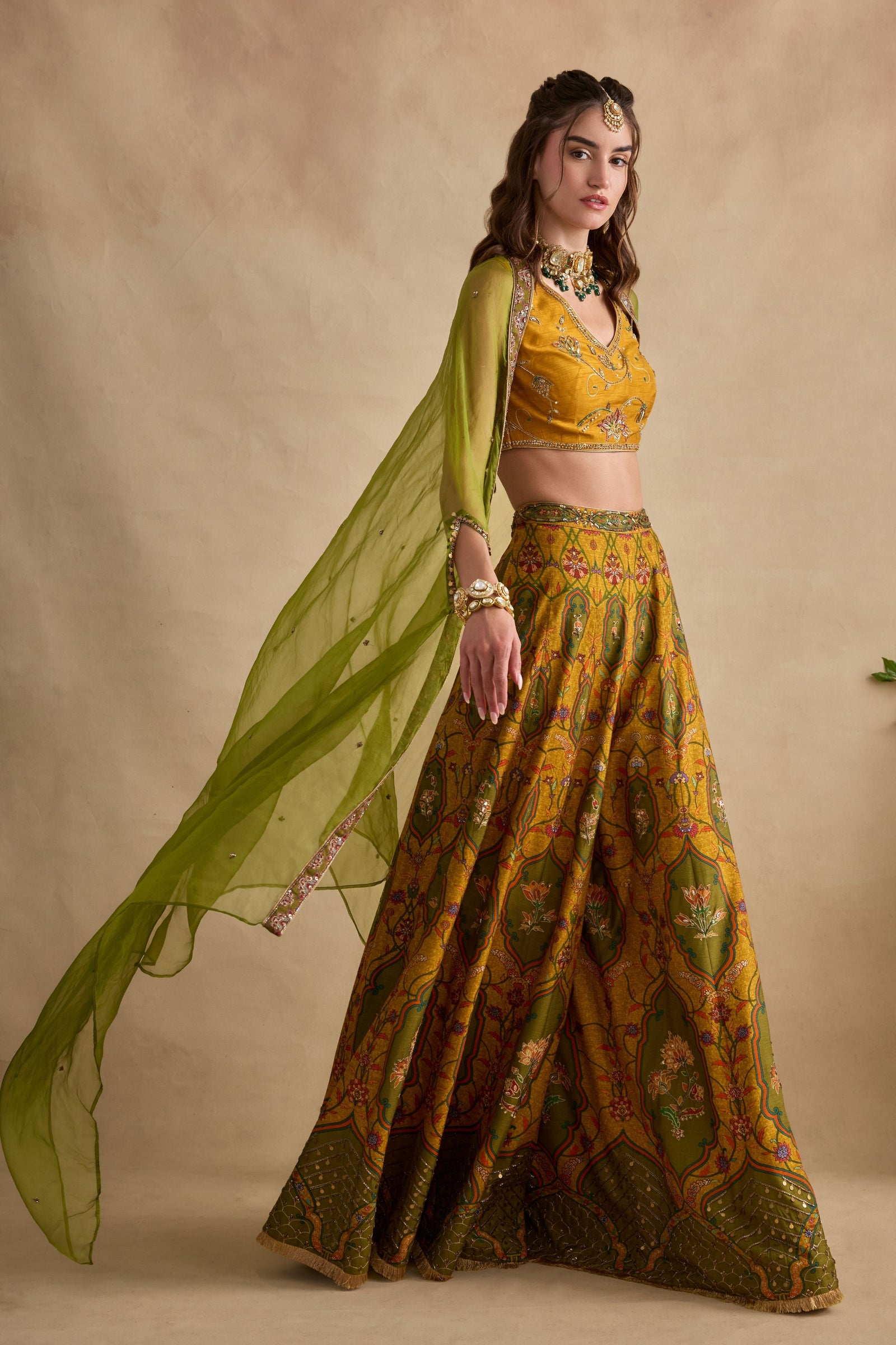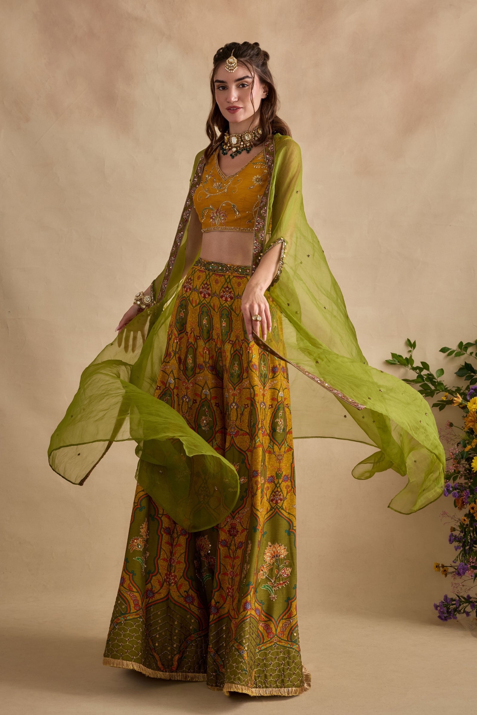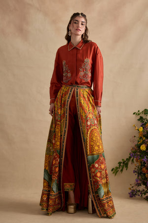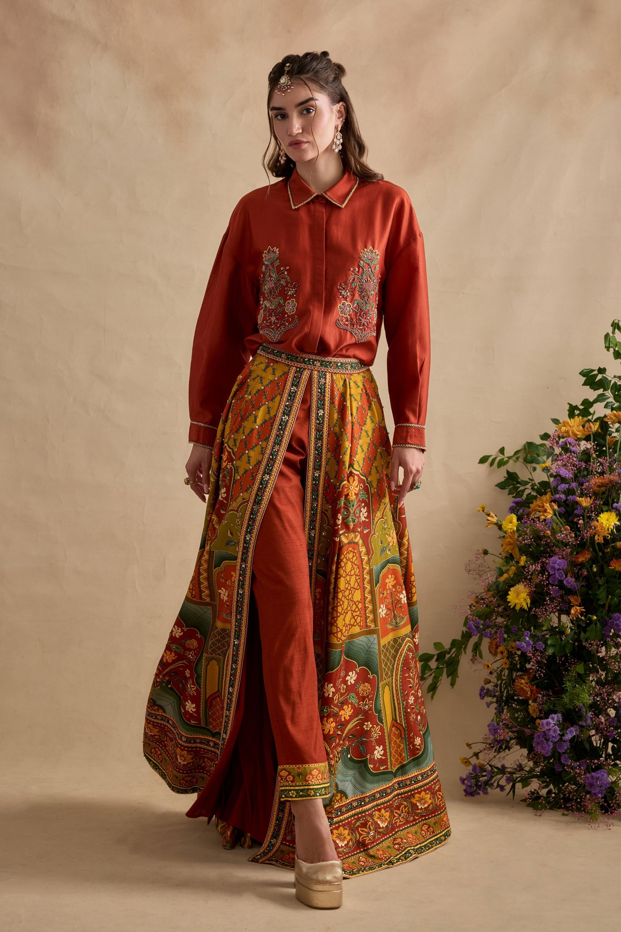 • Indulge in chic elegance a classically feminine silhouette ,slit skirt paired with hand embroidered shirt in piping and sequin detailing. Adorned in mughal inspired motif. Stylish shirt for timeless and sophisticated ensemble that seamlessly unite modern style with natural allure. Please note that the shirt length is 28 inches, the skirt length is 44 inches and the pant length is 40 inches.