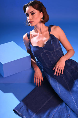 • Vericale denim dress: where panels meet denim seam artistry, and a fit-and-flare silhouette creates a dance of elegance. A masterpiece in every stitch, a statement in every sway.