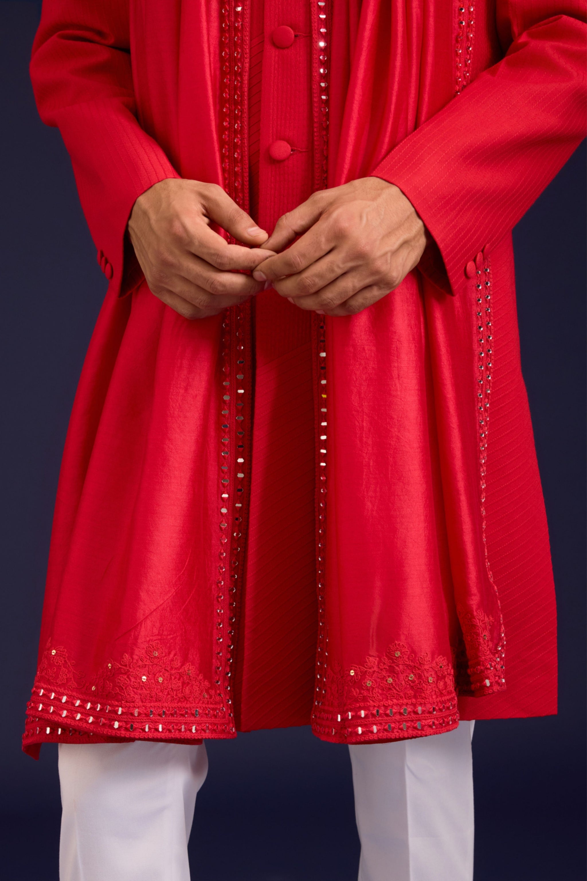• The Sherwani set can be purchased separately. Check out Red Cotton Silk Sherwani Set