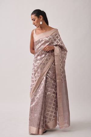 • Chanderi tissue saree: handwoven with intricate silver zari kadwa jal