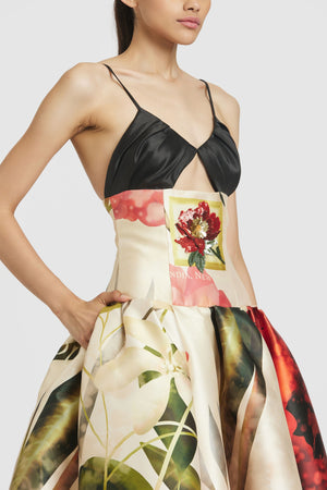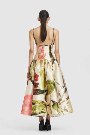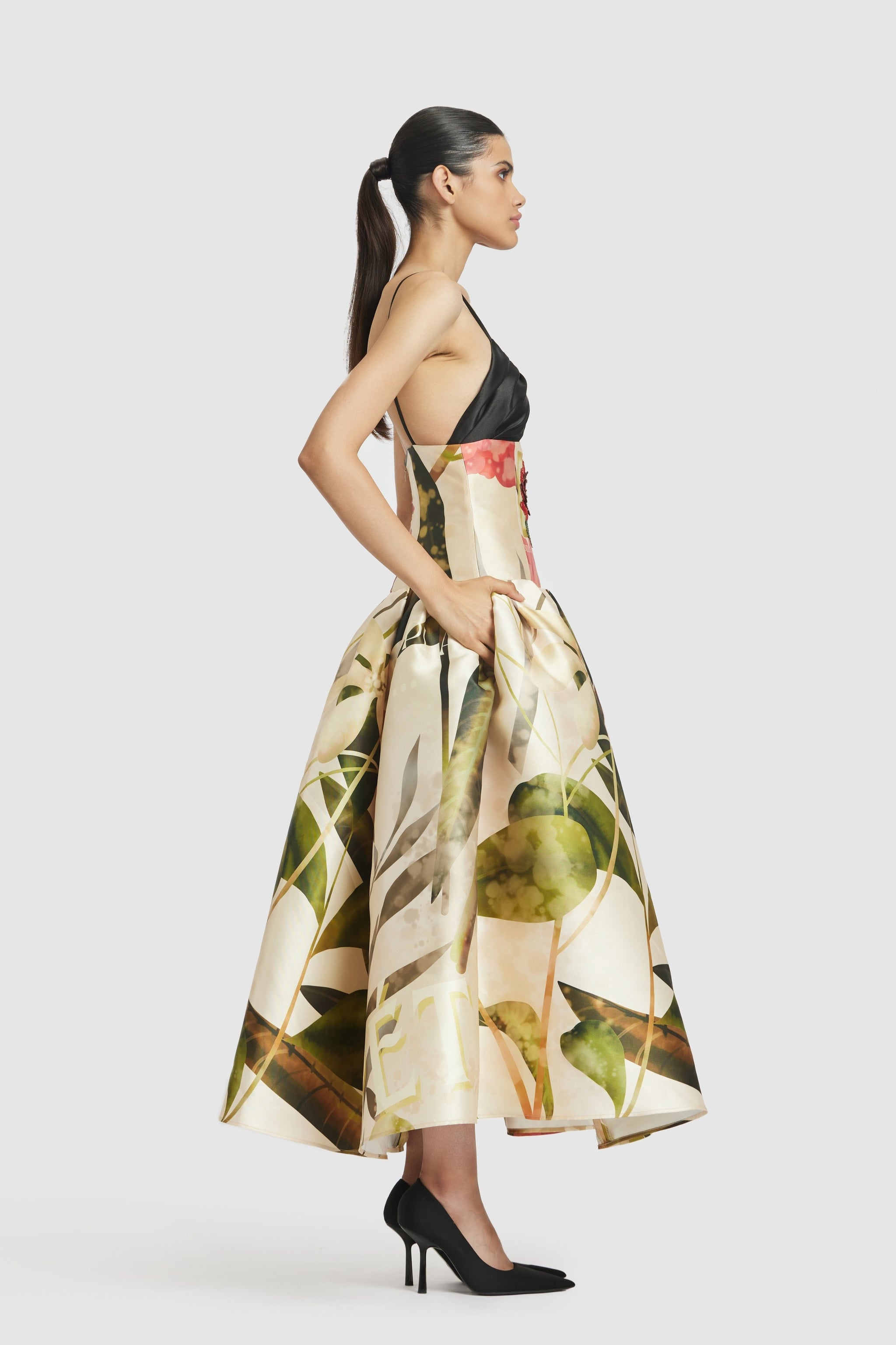 • Drop waisted - spaghetti strape midi with botanical embroidery