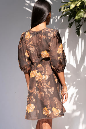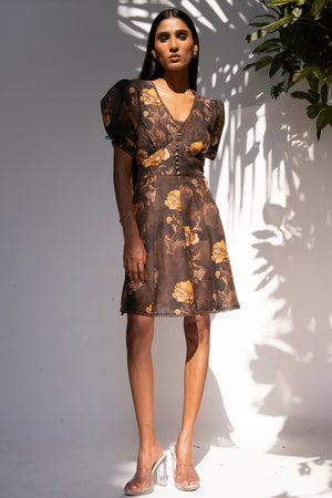 • Woven in shades of soil and sun, this brown printed cotton-linen dress is rooted in the rhythm of the earth. Light on the skin and rich in texture, it carries the scent of summer fields and slow afternoons. With prints that echo nature’s quiet patterns, this dress is an ode to simplicity — easy, breezy, and endlessly timeless.