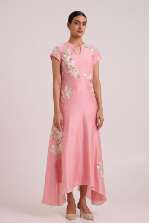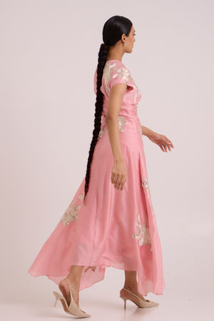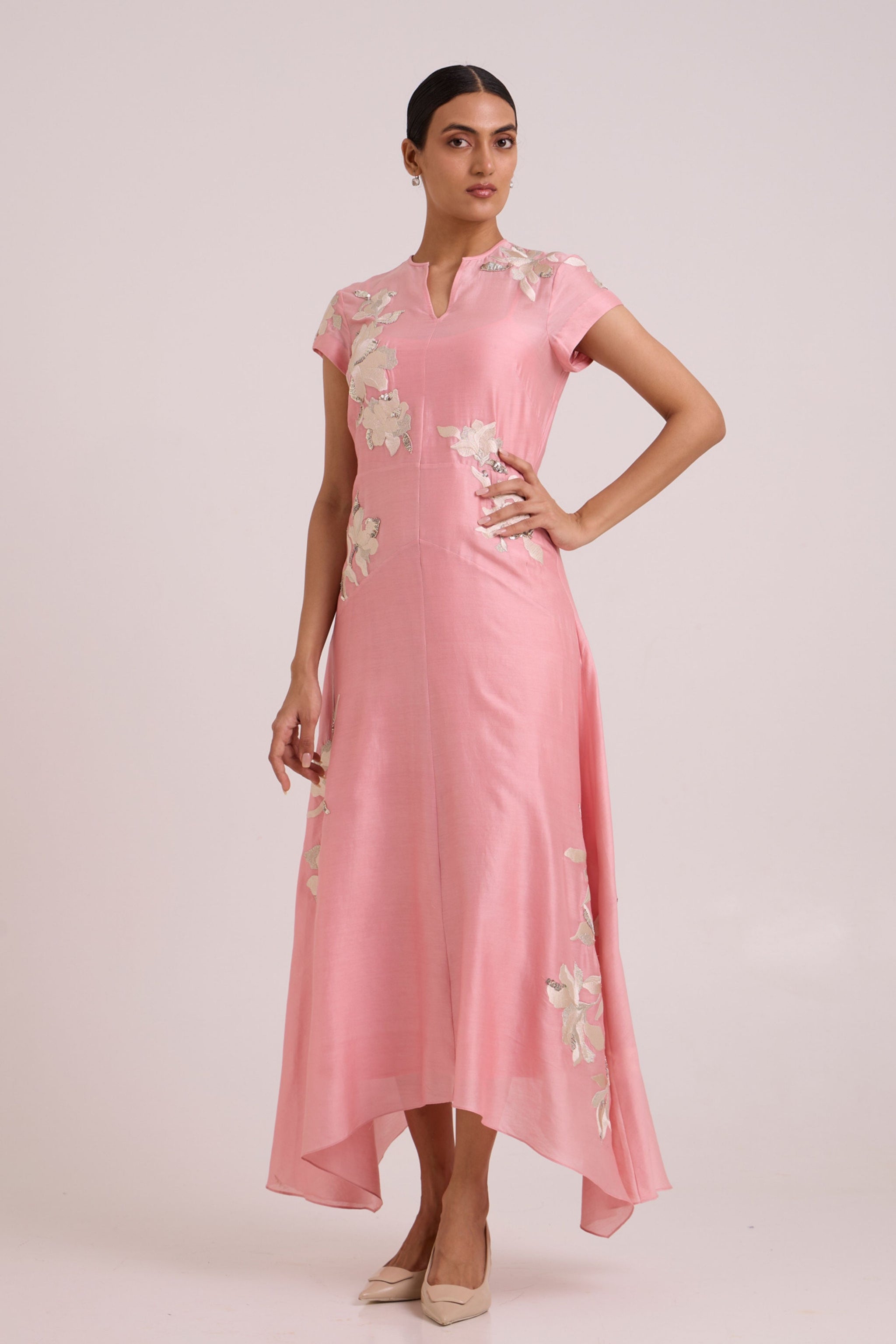 • Lizzy is quiet elegance. A flowing blush dress with a sculpted neckline and gentle high-low hem, embroidered with soft florals that feel almost like a whisper. It’s graceful, feminine, and timeless — the kind of dress that doesn’t just make an entrance, it lingers in memory.