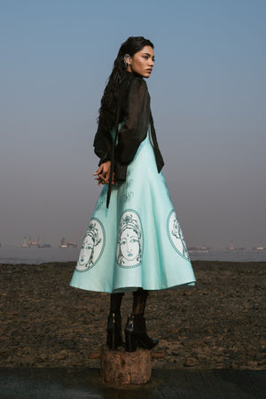 • Note:- each garment is a unique expression of art. Variations in mural placement are intentional to minimize fabric waste and preserve sustainability. Additionally, slight differences in color tones may occur, as each fabric batch is individually crafted and cannot be identically reproduced.