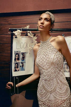 • Silver grey halter dress