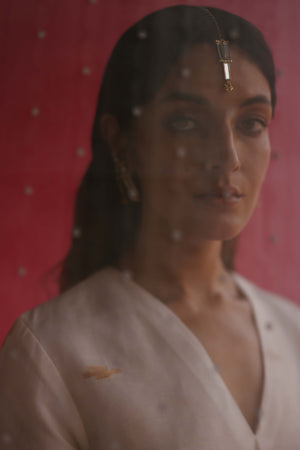 • Fabric: Kurta: Pure Linen Silk Handloom Weave, Pant: Pure Sheer Gold-silver Stripe Zari Tissue Silk, Dupatta: Pure Handloom Zari Weave.