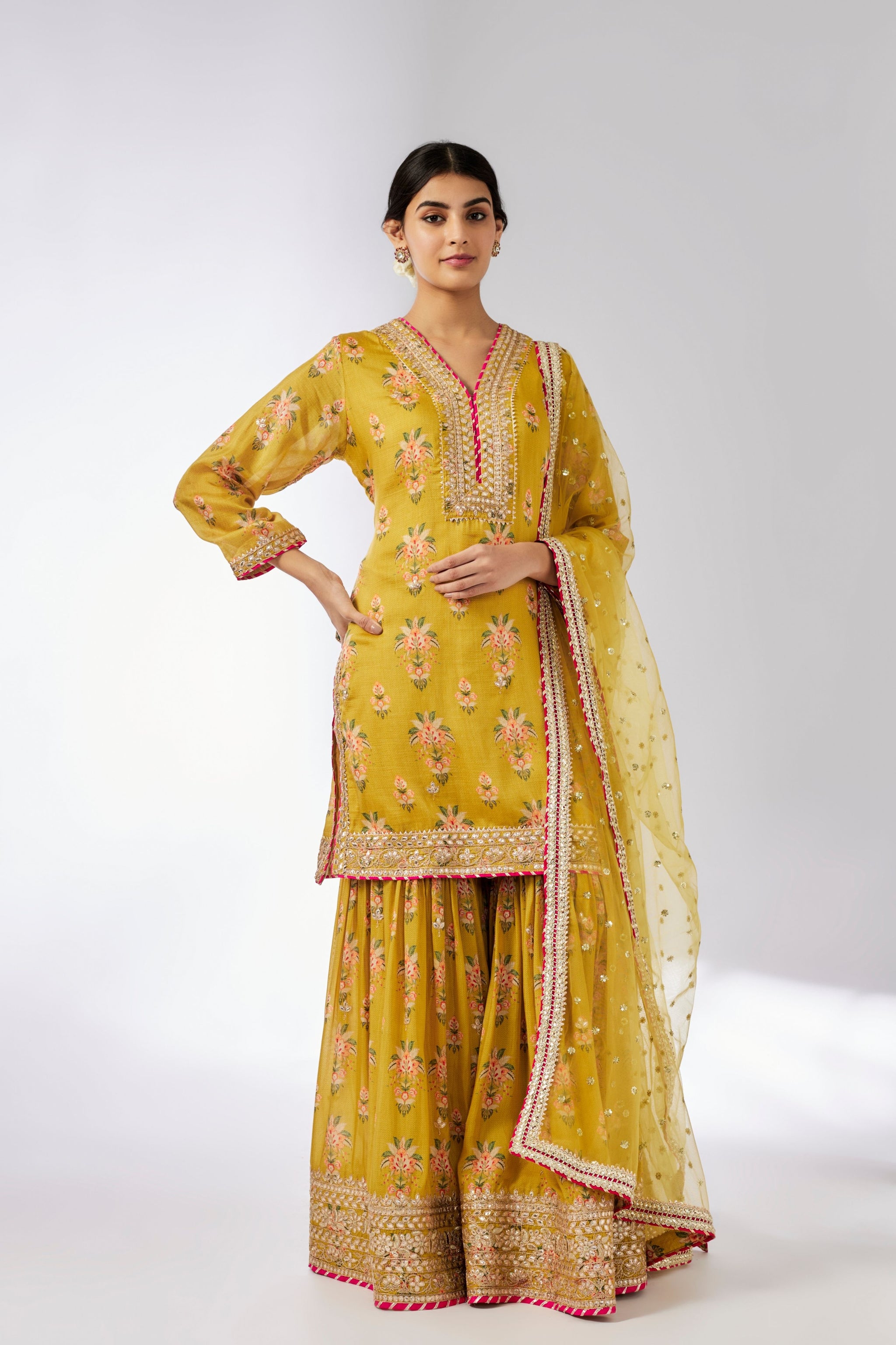 • Fabric: Kurta - Cotton Silk Sharara - Cotton Silk Dupatta - Net