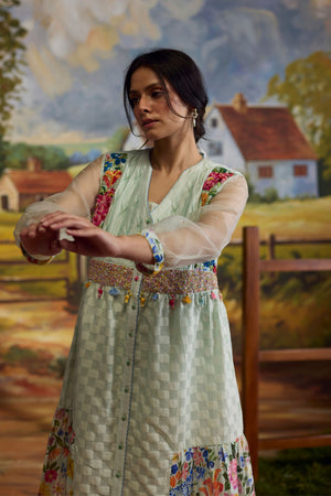Care: Dry Clean Only. As garments are handmade and handwoven, natural variations in colours and weaves are a characteristic of the textile, and may be found in the finished garments as well.
