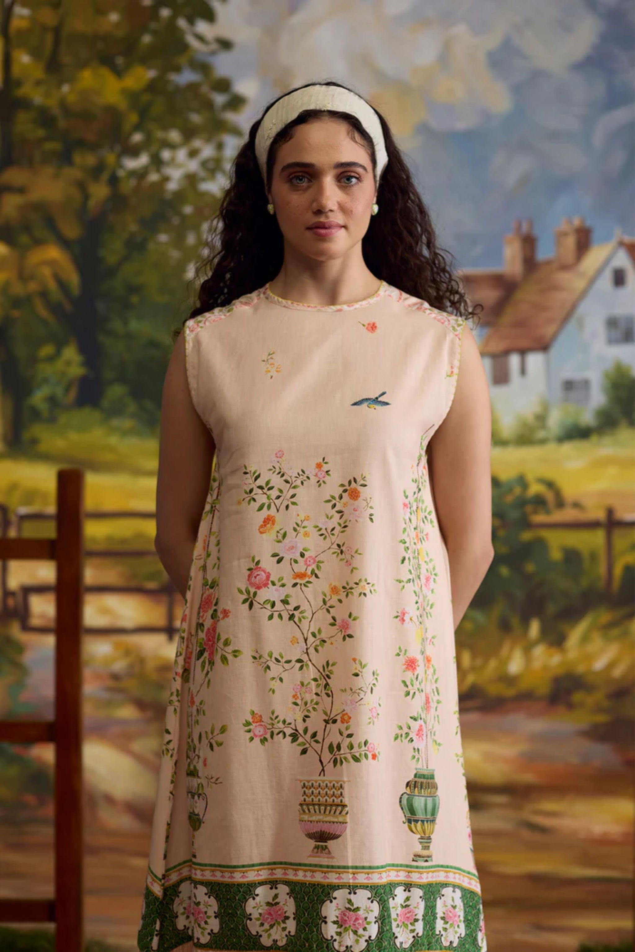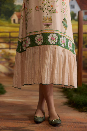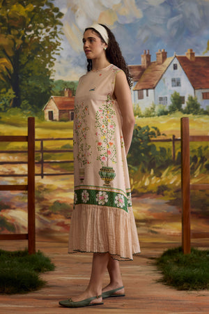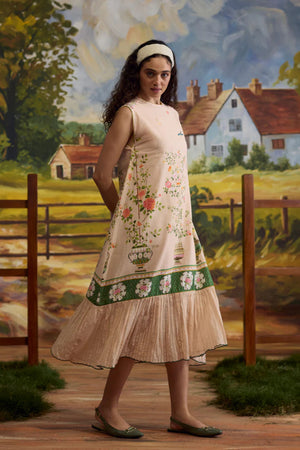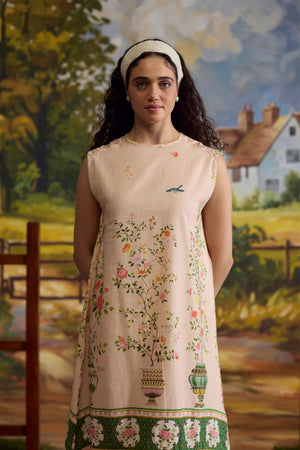 • Crafted in a blend of linen and chanderi, the sorbet floral dress captures the essence of spring-summer elegance. The striped gathers add texture to the flowy silhouette, while the printed florals bring a soft, vibrant touch to the design.